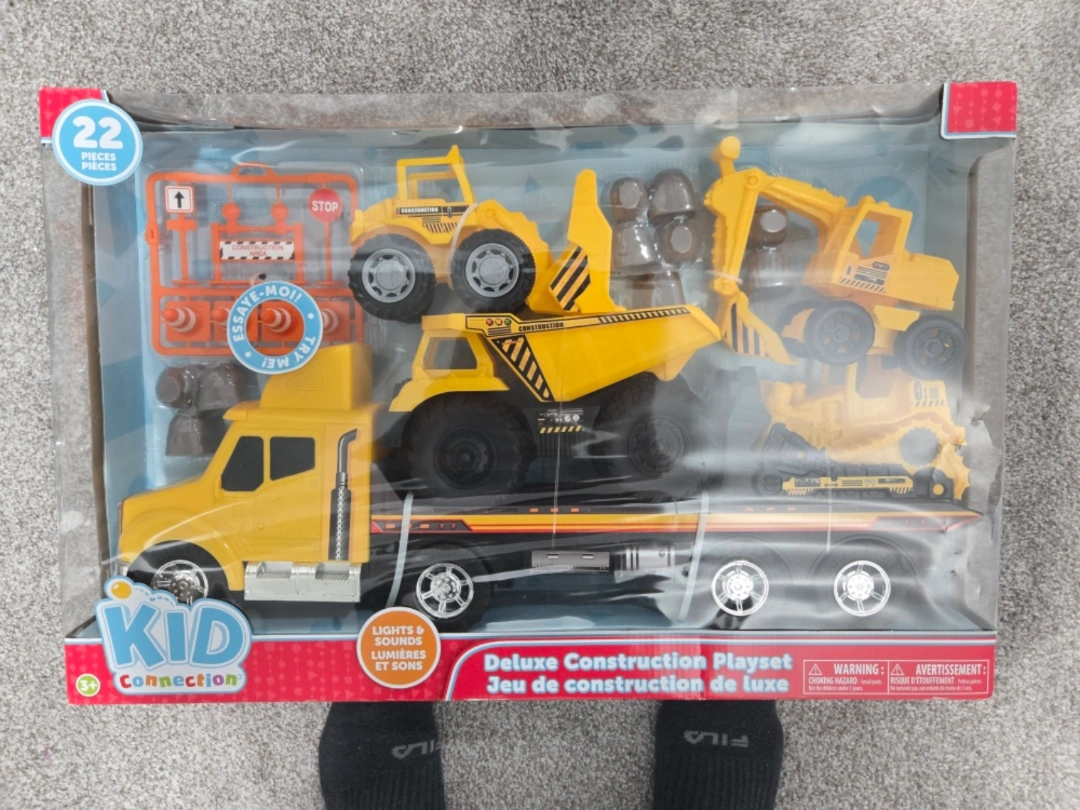 Unopened brand new Kid Connection Deluxe Construction Playset! It includes 22 pieces and features lights and sounds. Perfect for your little construction enthusiast!