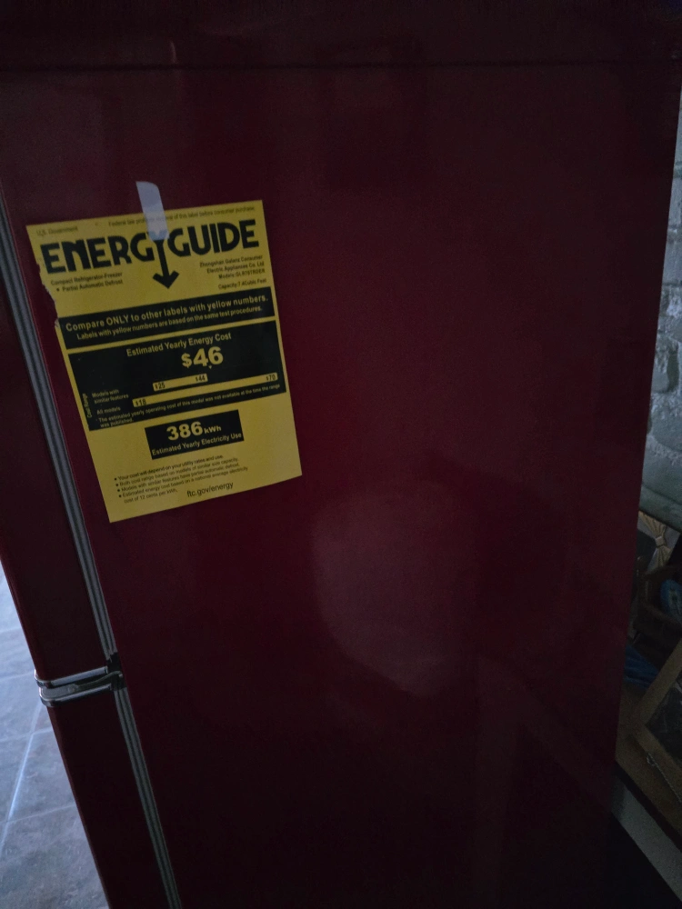 We are remodeling kitchen doesn't go anymore with house. i loved this fridge though I was so happy when I bought it. plastic on side can be taken off. This is is in good condition. in Home Depot brand new its 299.