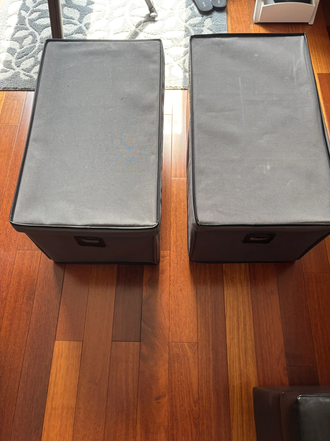 Selling a set of two grey storage boxes. They're in great shape and ready to help you organize your space! Perfect for decluttering any room in your home