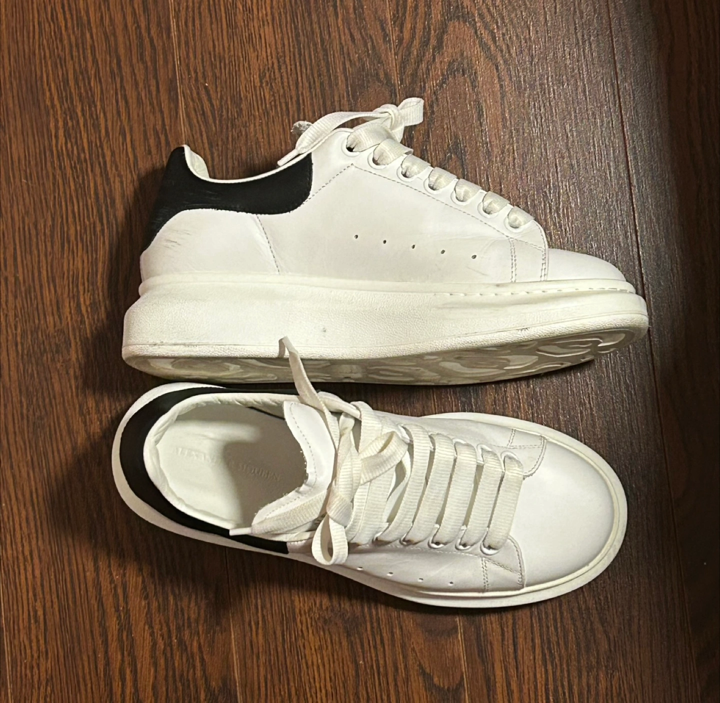 Buy & SellAlexander McQueen White/Black SneakersAlexander McQueen White/Black Sneakers$120Selling a pair of Alexander McQueen sneakers in white with black accents. Please see photos for condition.ConditionLike newSizeUS 9BrandAlexander McQueenWHERE TO MEETCheck LocationView MapSELLERverifiedVasMalvern792 reviews3 chats·0 favorites·74 views