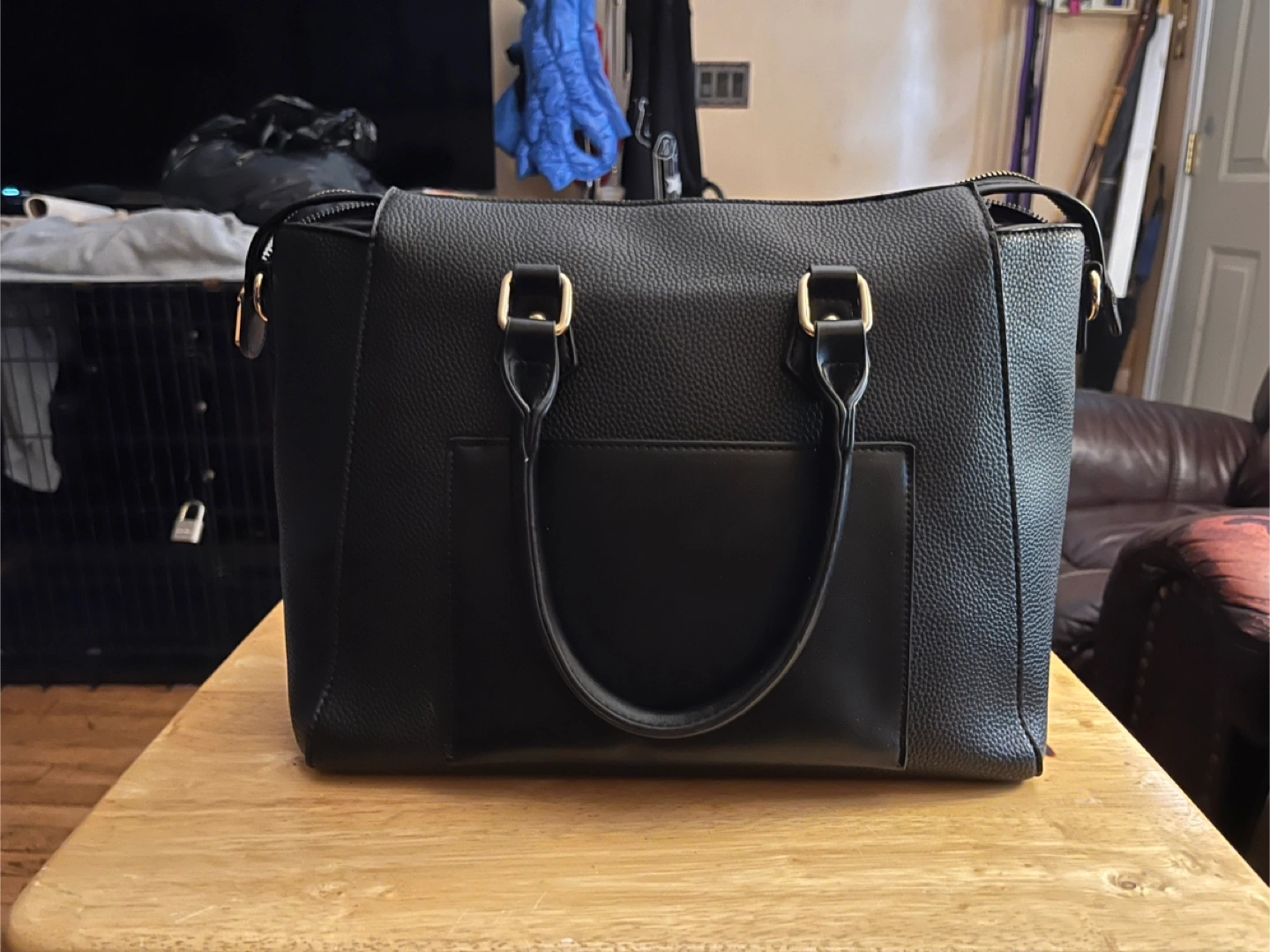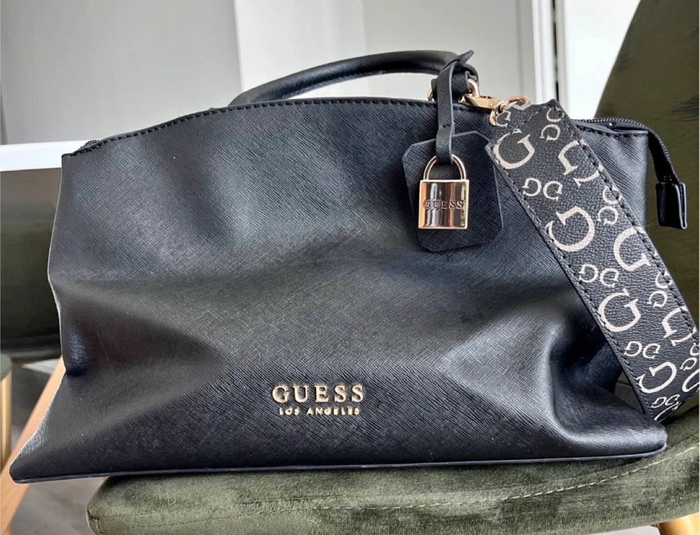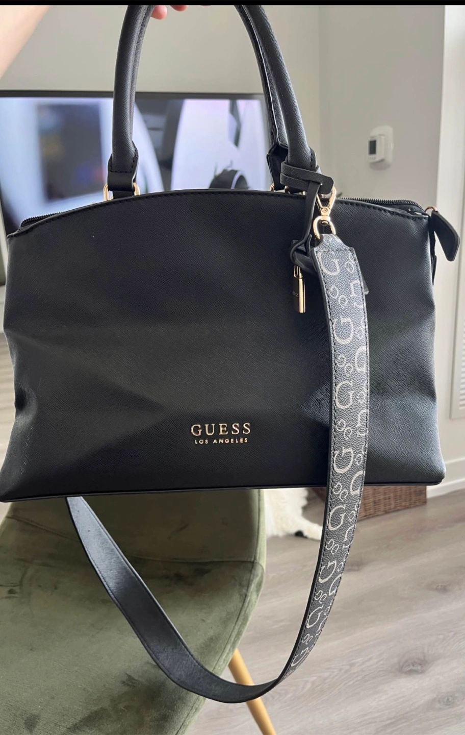 Selling a black Guess Los Angeles handbag. It's in great condition and features a stylish design with a detachable strap. Perfect for everyday use!