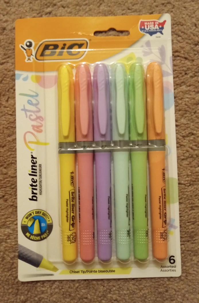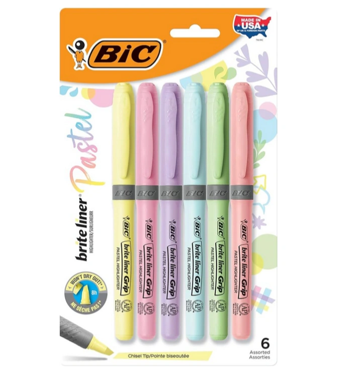BIC Brite Liner Grip Pastel Highlighters - 6 Pack