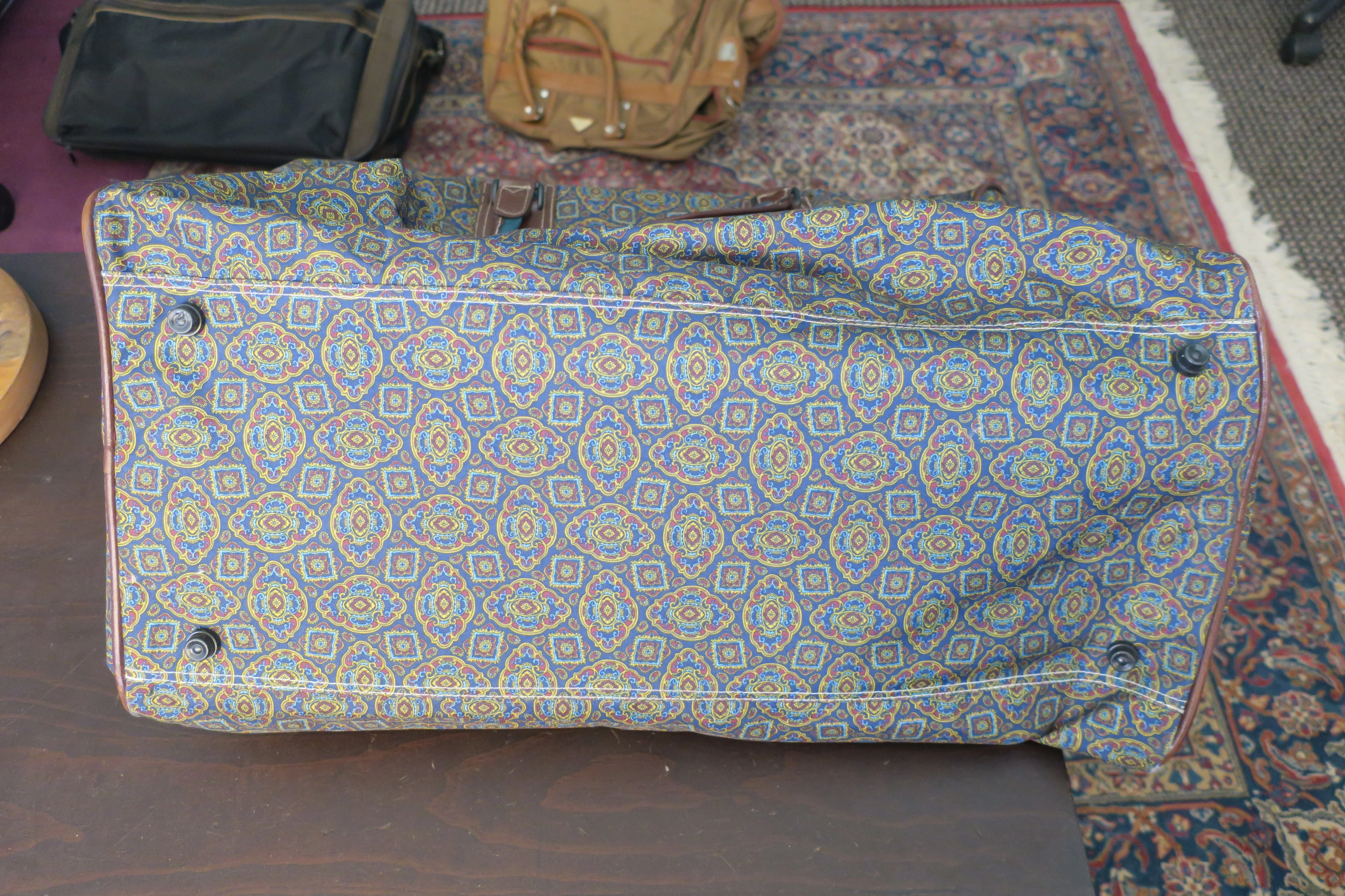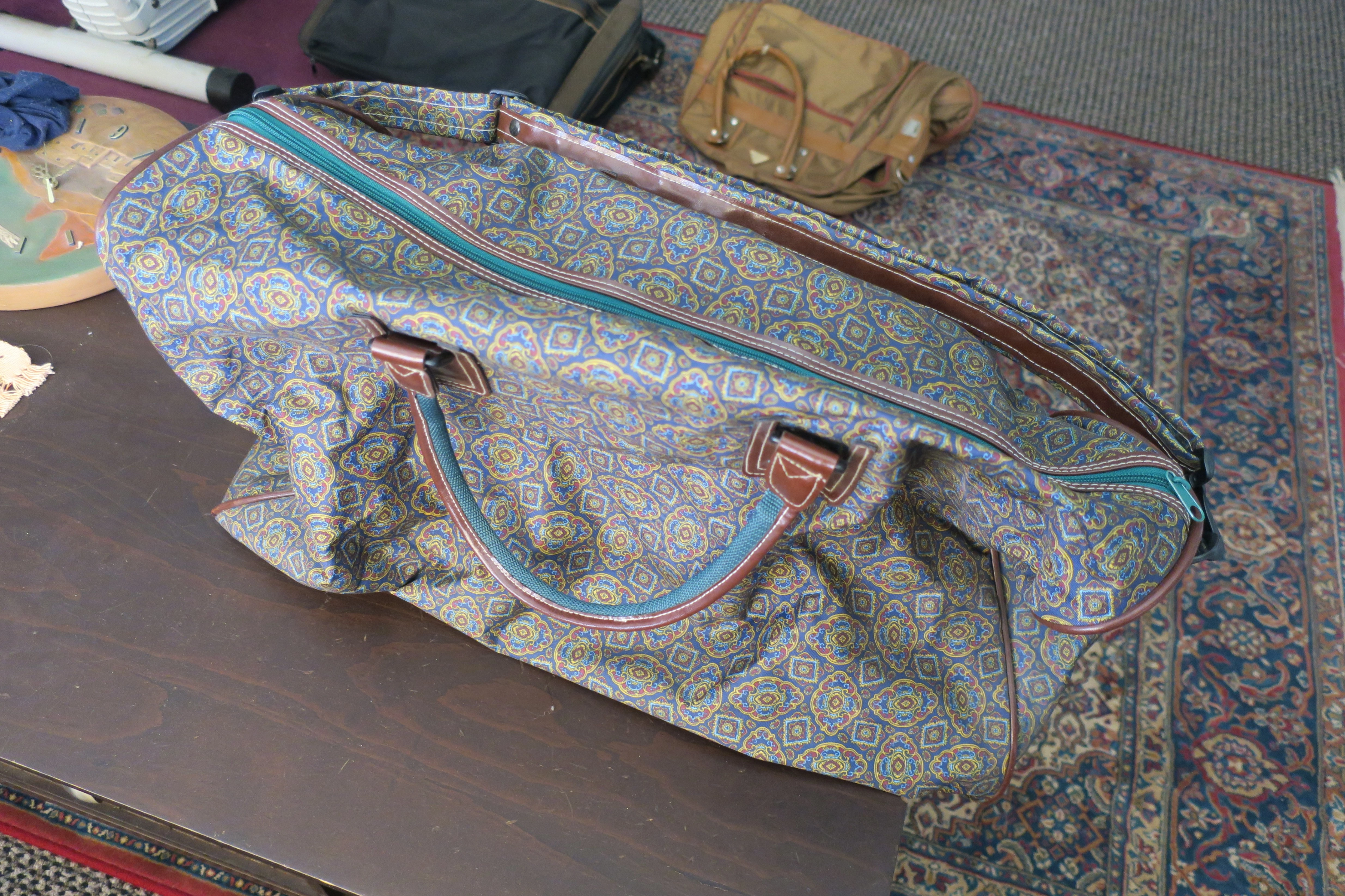 Various Bags in great condition. 1. Leather Style 20" Long x 10" Width x 14" High Good Condition $25 2. Canvas Pattern 24" Long x 11" Width x 18" High Excellent Condition Lightweight $40 3. Dynex Satchel Bag Brand NEW never used. 17" x 13" x 2.5" This is a lightweight bag made of soft durable material. Easy to brush/clean. Main section for Laptop or? 2nd compartment for papers, books, phone etc. Has pen holders. $20