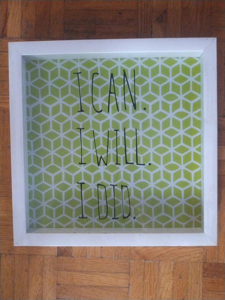 1000+A framed print with the motivational words 'I Can. I Will. I Did.' The background is a cool green geometric pattern, and the frame is white. It's perfect for adding a bit of inspiration to any room!