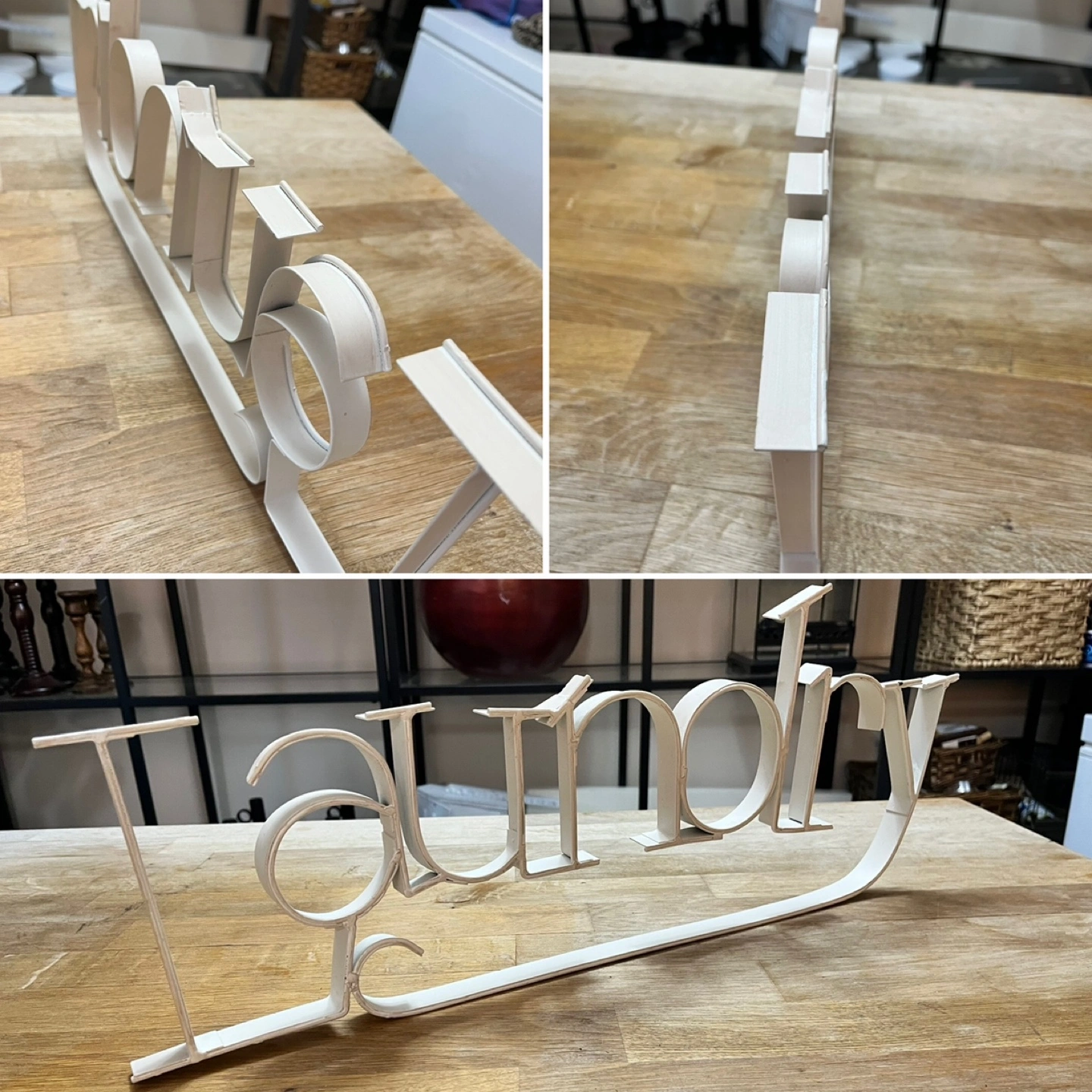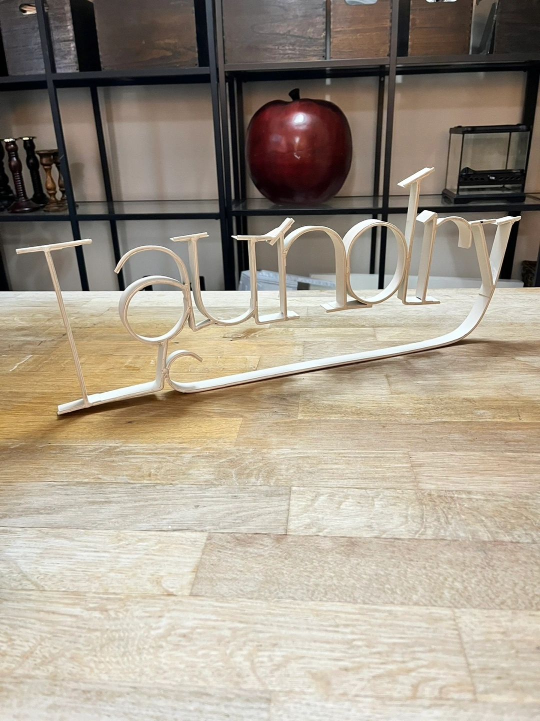 Laundry sign. Brand new. White painted metal. $10 21” L x 8” H x 3/4” W Located in Mayland Heights, Calgary (NE) First come first served No holds without e-deposit No delivery Prices are firm