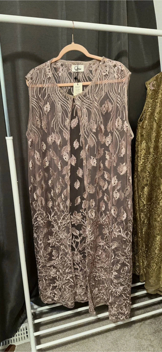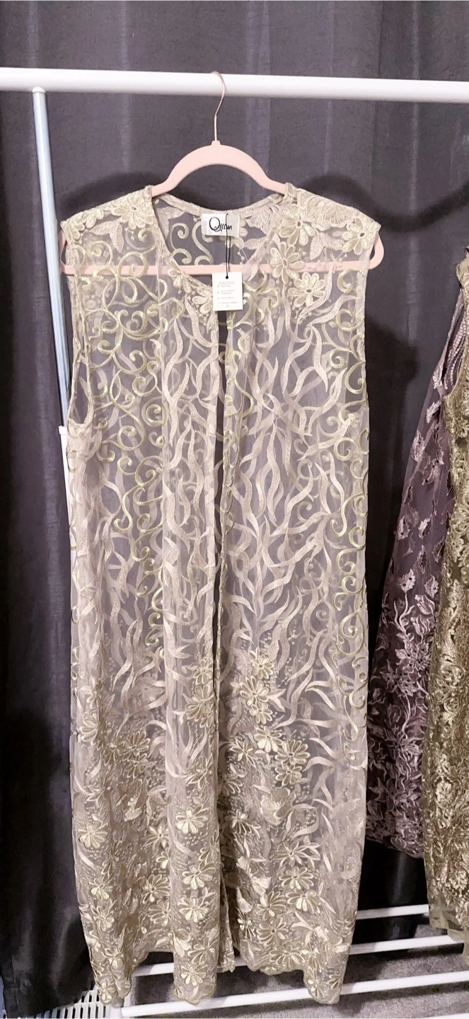 This is a beautiful sleeveless lace. It's perfect for layering and adding a touch of elegance to any outfit. The delicate lace detailing is really stunning!