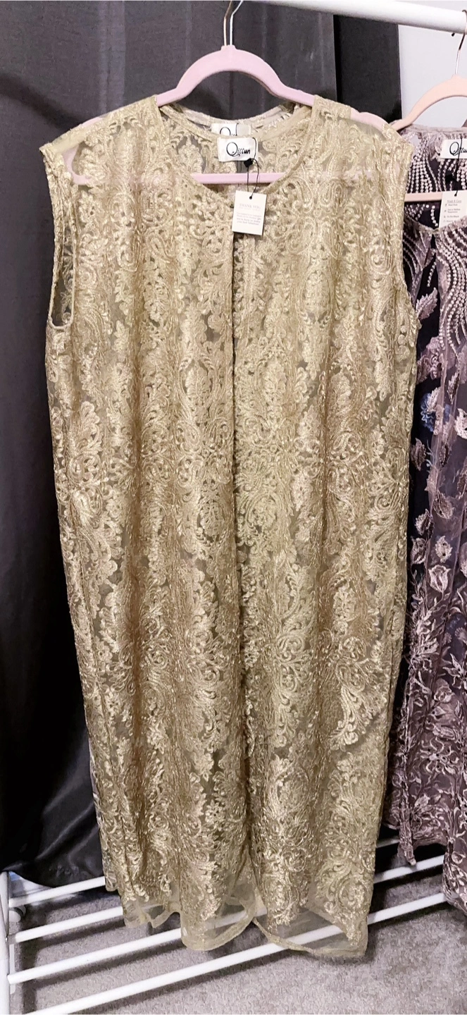 This is a beautiful sleeveless lace. It's perfect for layering and adding a touch of elegance to any outfit. The delicate lace detailing is really stunning!