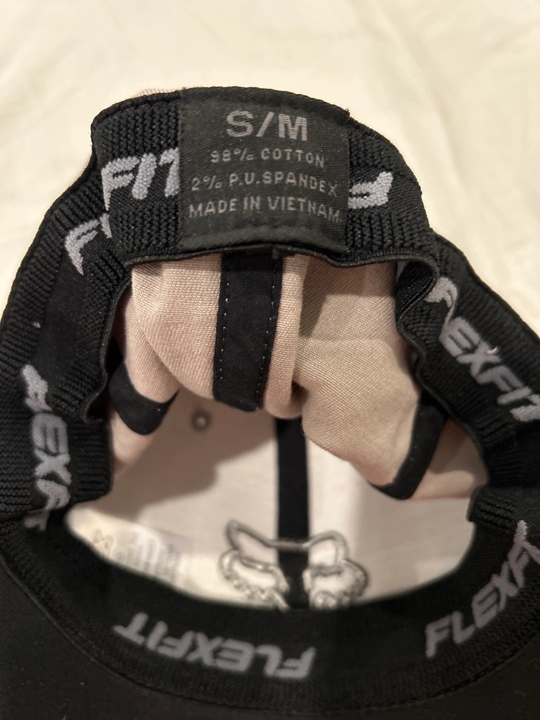 Selling a Fox Racing Flexfit hat in size S/M. It's a stylish and comfortable hat with the iconic Fox logo. The hat is made of 98% cotton and 2% P.U. Spandex.