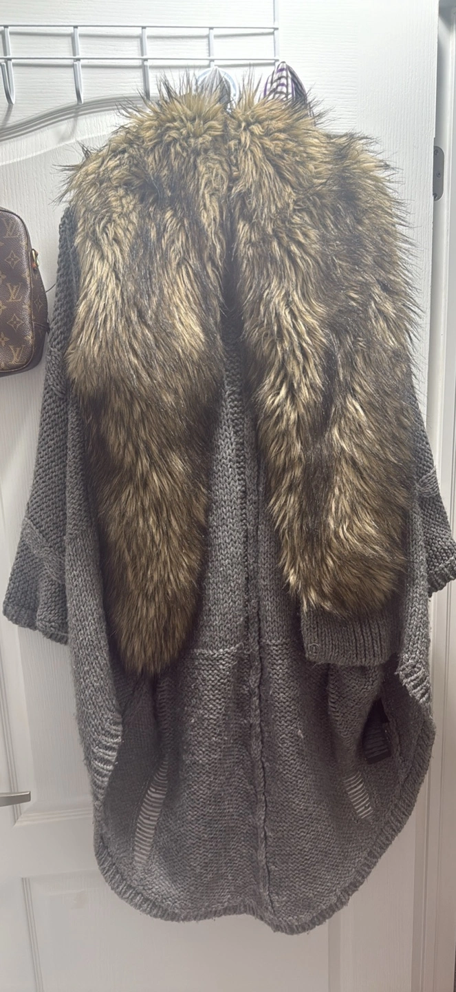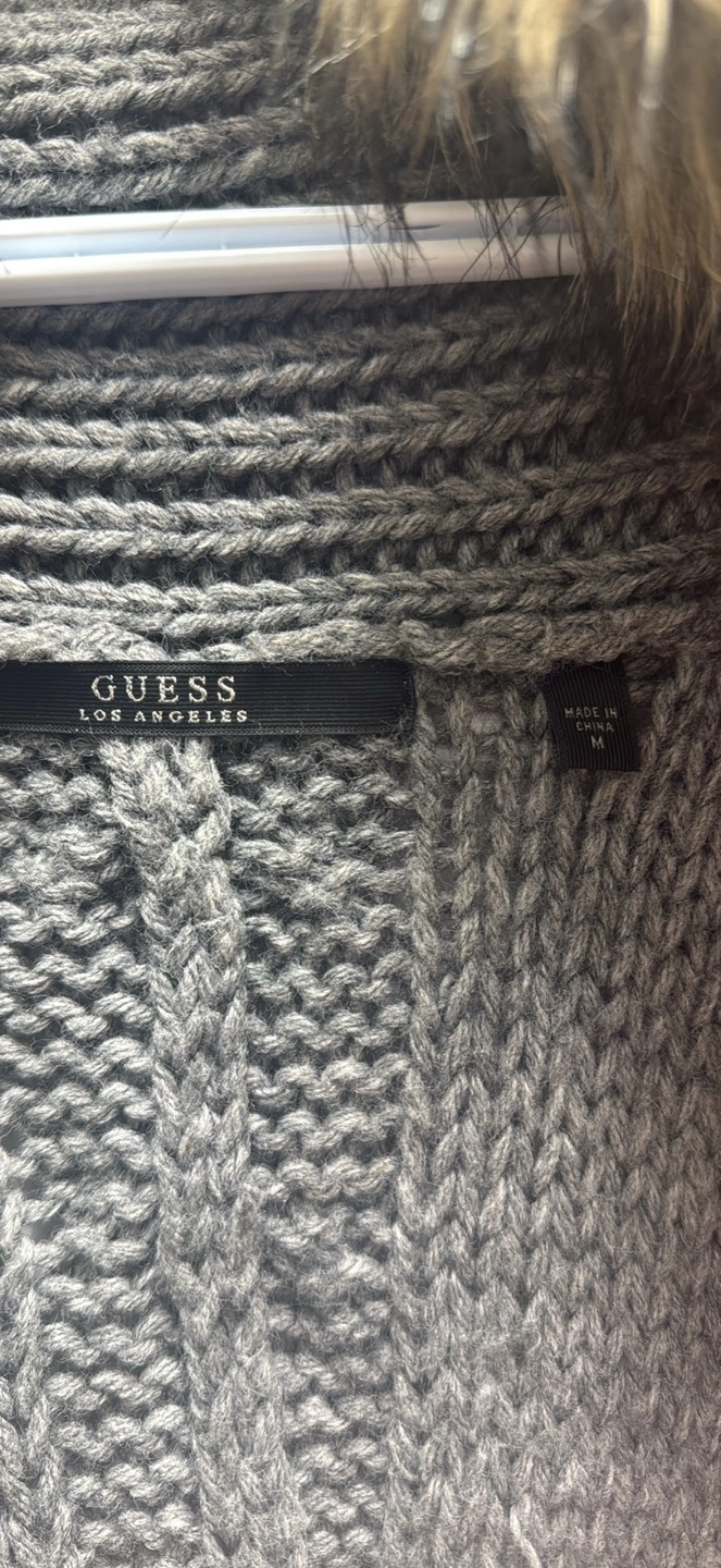 Guess Los Angeles Grey Knit Cardigan with Faux Fur Collar - M