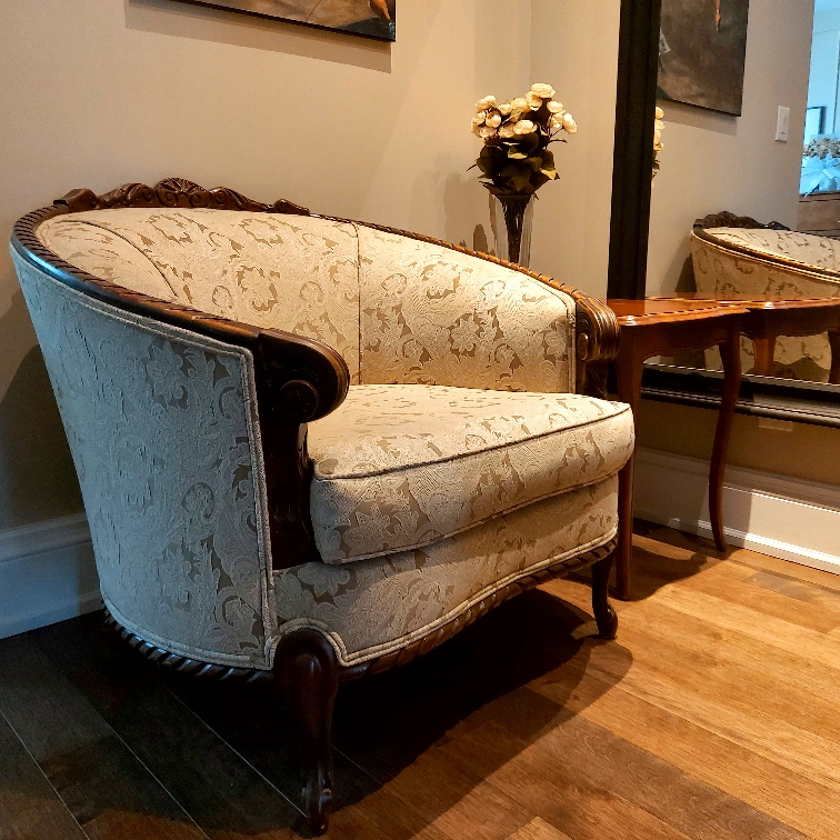It was only used for display, so the cushion and overall condition is perfect. It has no sagging, rips, or stains.