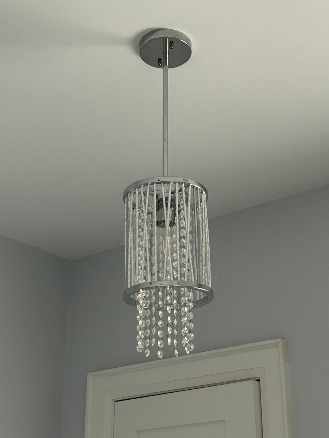 Add a touch of sparkle to your home with this pendant light! It features a chrome finish and crystal accents, perfect for creating a glamorous and inviting atmosphere