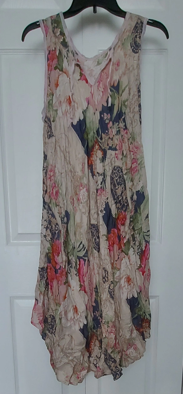 🆕Brand new and never worn! Beautiful floral print dress in a size medium/large! It has a unique design with a mix of floral patterns and a comfortable fit. The dress measures approximately 62 cm across the top when laid flat. It's perfect for adding a touch of elegance to your wardrobe