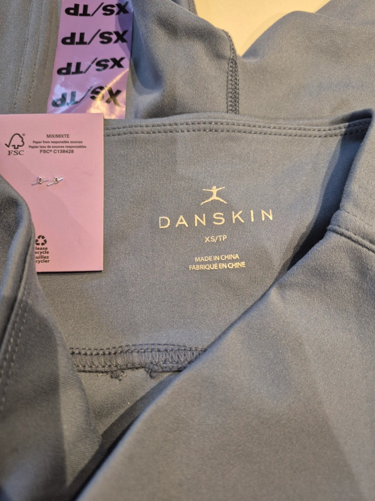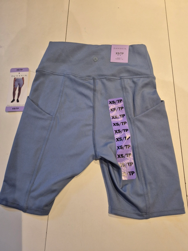 Selling a brand new pair of Danskin bike shorts! They are a size XS/TP and a lovely blue colour. These shorts are perfect for workouts or just lounging around. They still have the tags on, they're in perfect condition