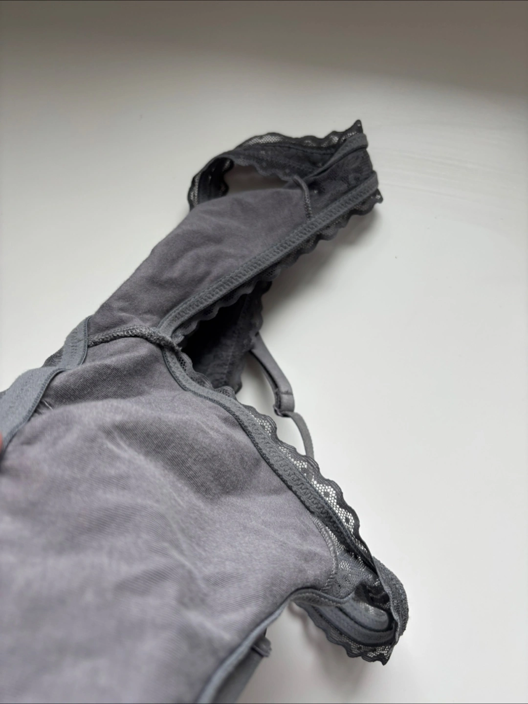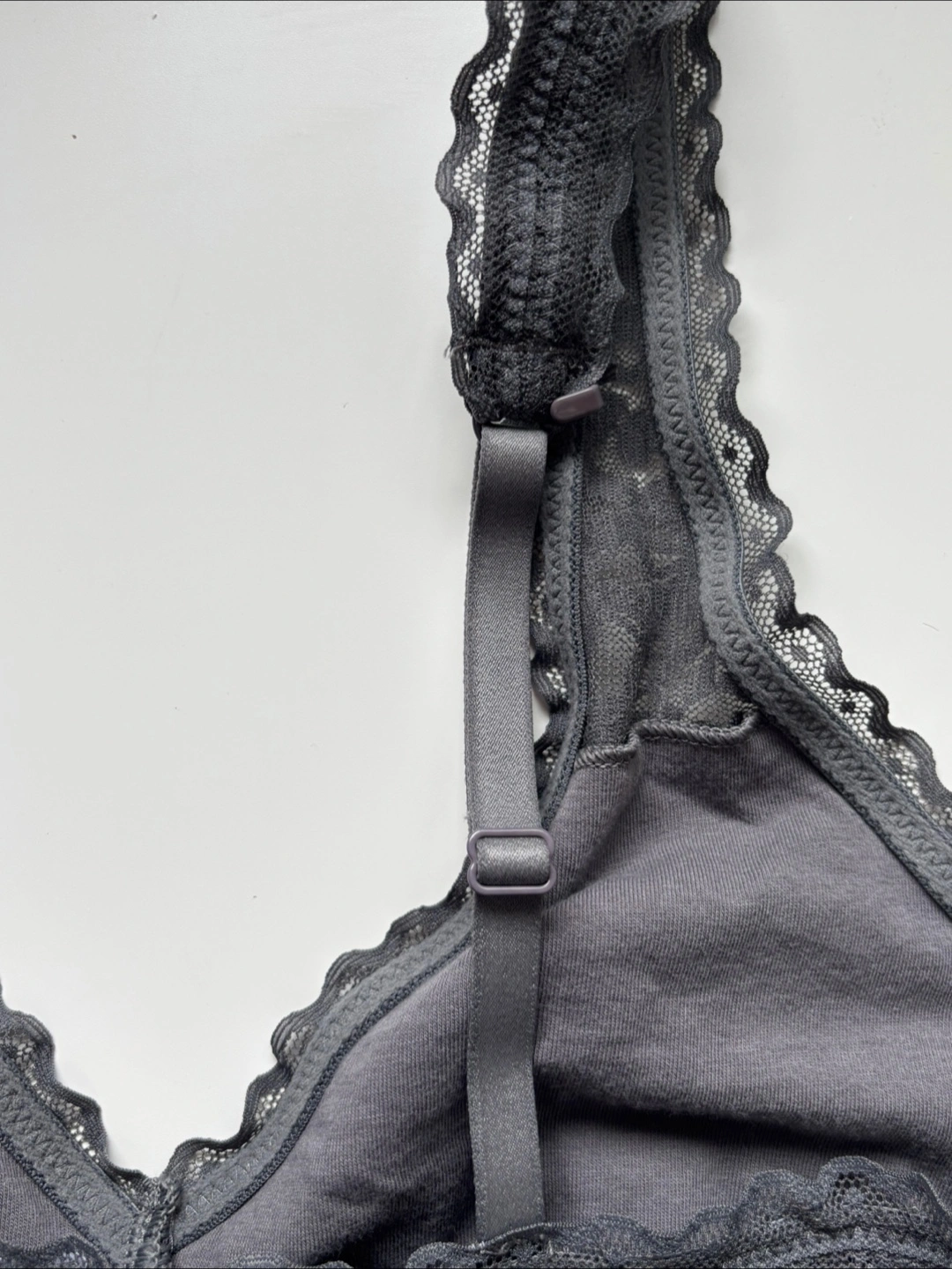 Selling a comfy Aerie bralette in size large! It's a pretty grey colour with lace detailing. Perfect for everyday wear or lounging around the house