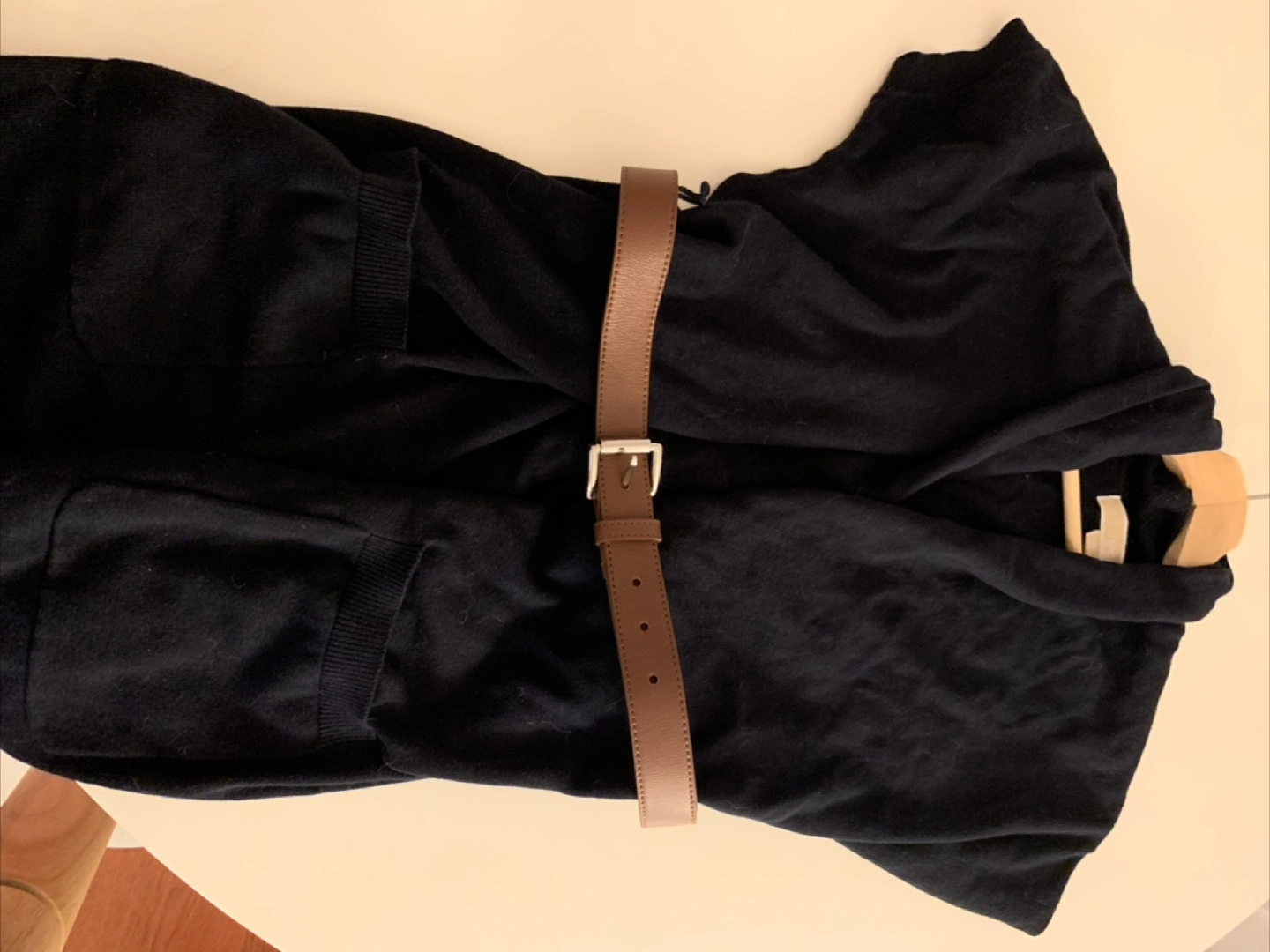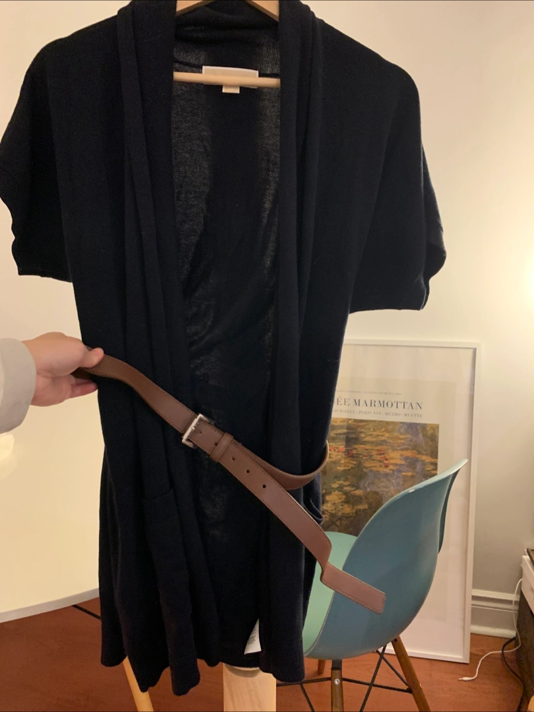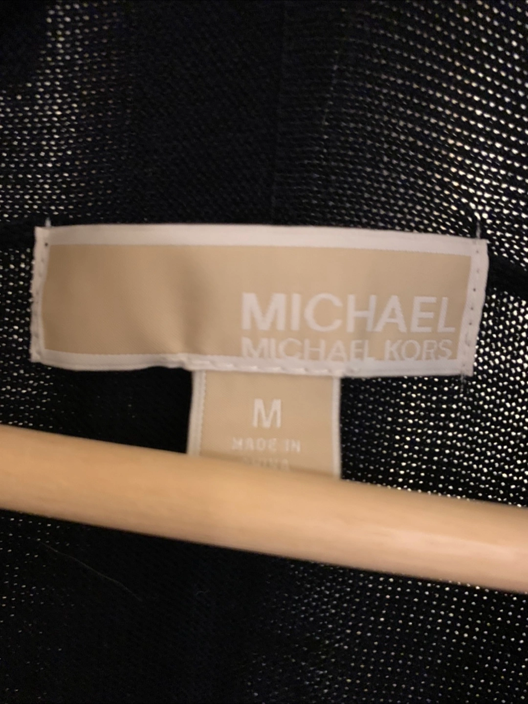 Selling a Michael Kors black cardigan in size medium. It comes with a stylish brown belt to cinch the waist. A versatile piece for any wardrobe!