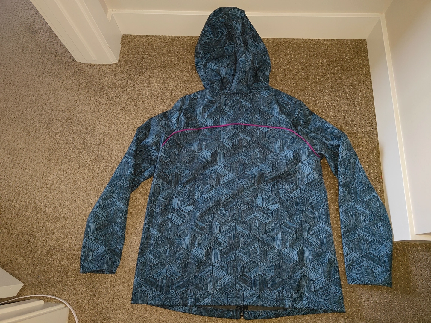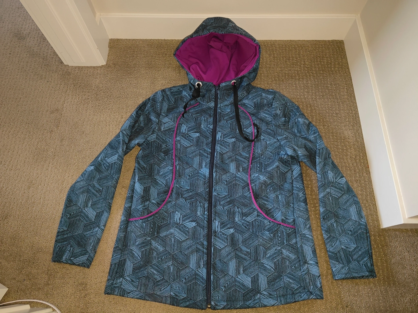 I am selling a Woman / Girl Handmade Custom Autumn / Spring / Summer Jacket with Hood in used, excellent condition. No rips or tears. Can be used as a hoodie. This is a one of a kind jacket that you won't find anywhere else.