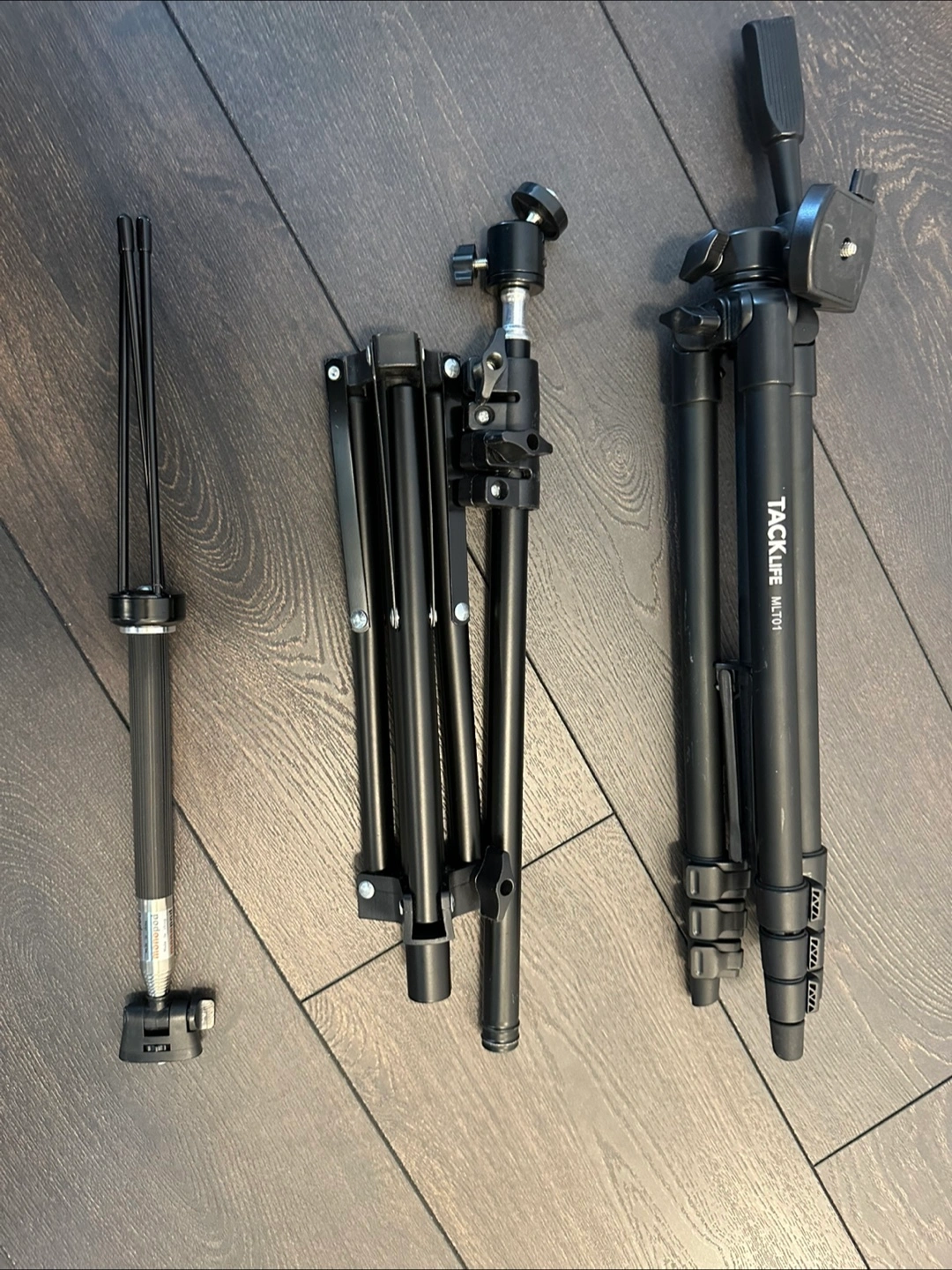 3 Tripods for sale. Could be used for camera, phone, or selfie lights (Lights not included).