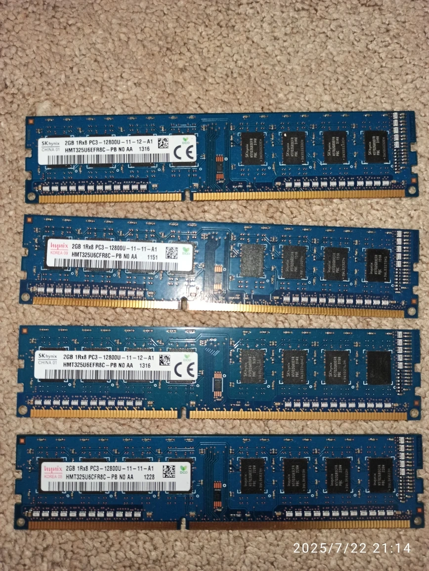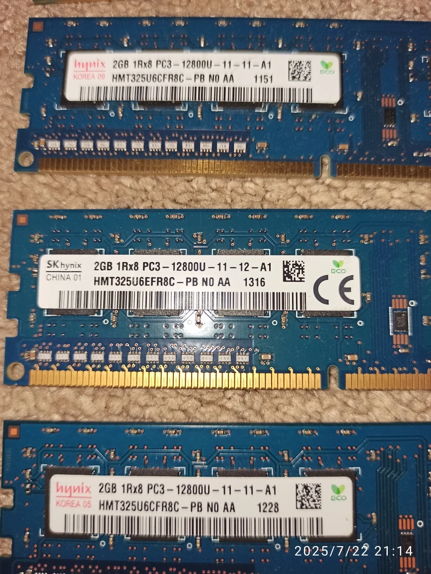 Selling Hynix 2GB RAM sticks. They're PC3-12800U modules. Perfect for upgrading an older computer!