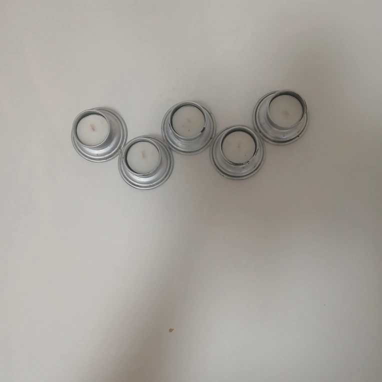 Selling a set of five silver-coloured tea light candle holders. They are in great shape and ready to add a cozy touch to your space!