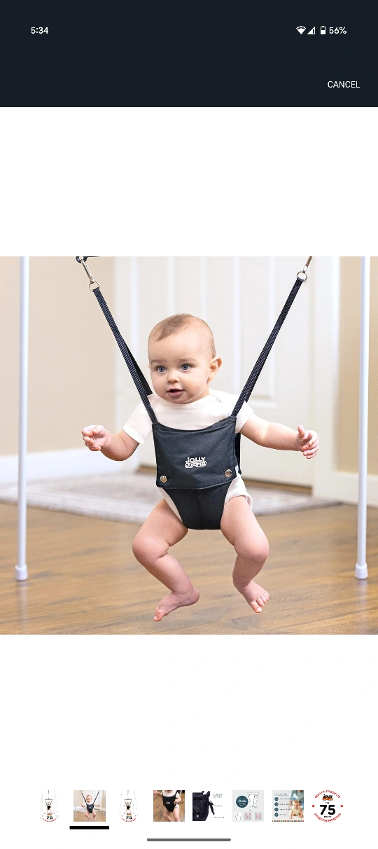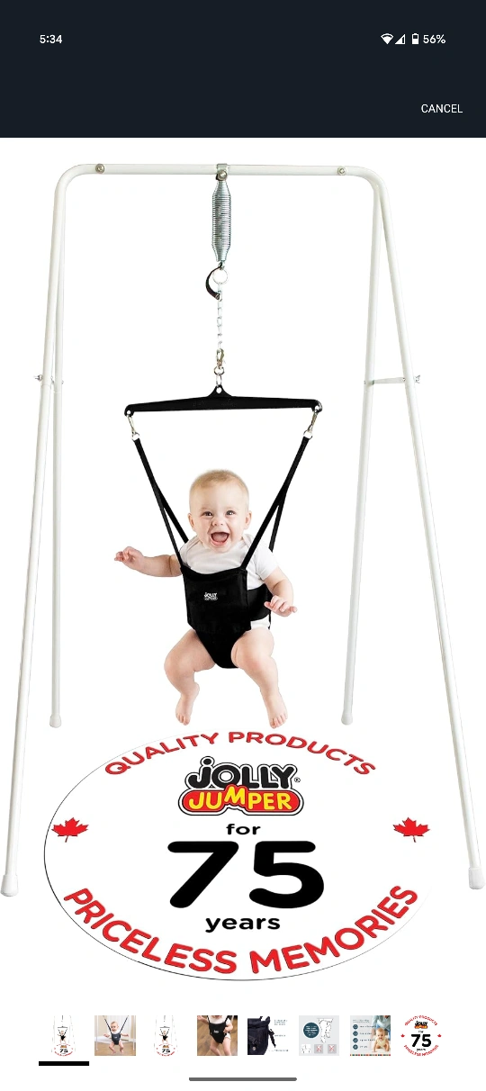 Get your little one bouncing with this Jolly Jumper! It's a great way to keep them entertained and active. The Jolly Jumper features a sturdy frame and a comfortable seat for your baby. It's designed to help develop coordination and strength in a fun and safe way. Recommended for babies who can hold their head up unassisted.