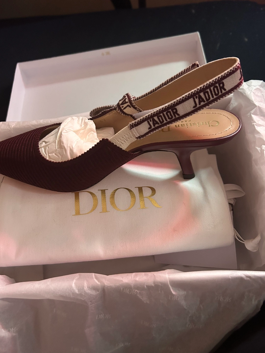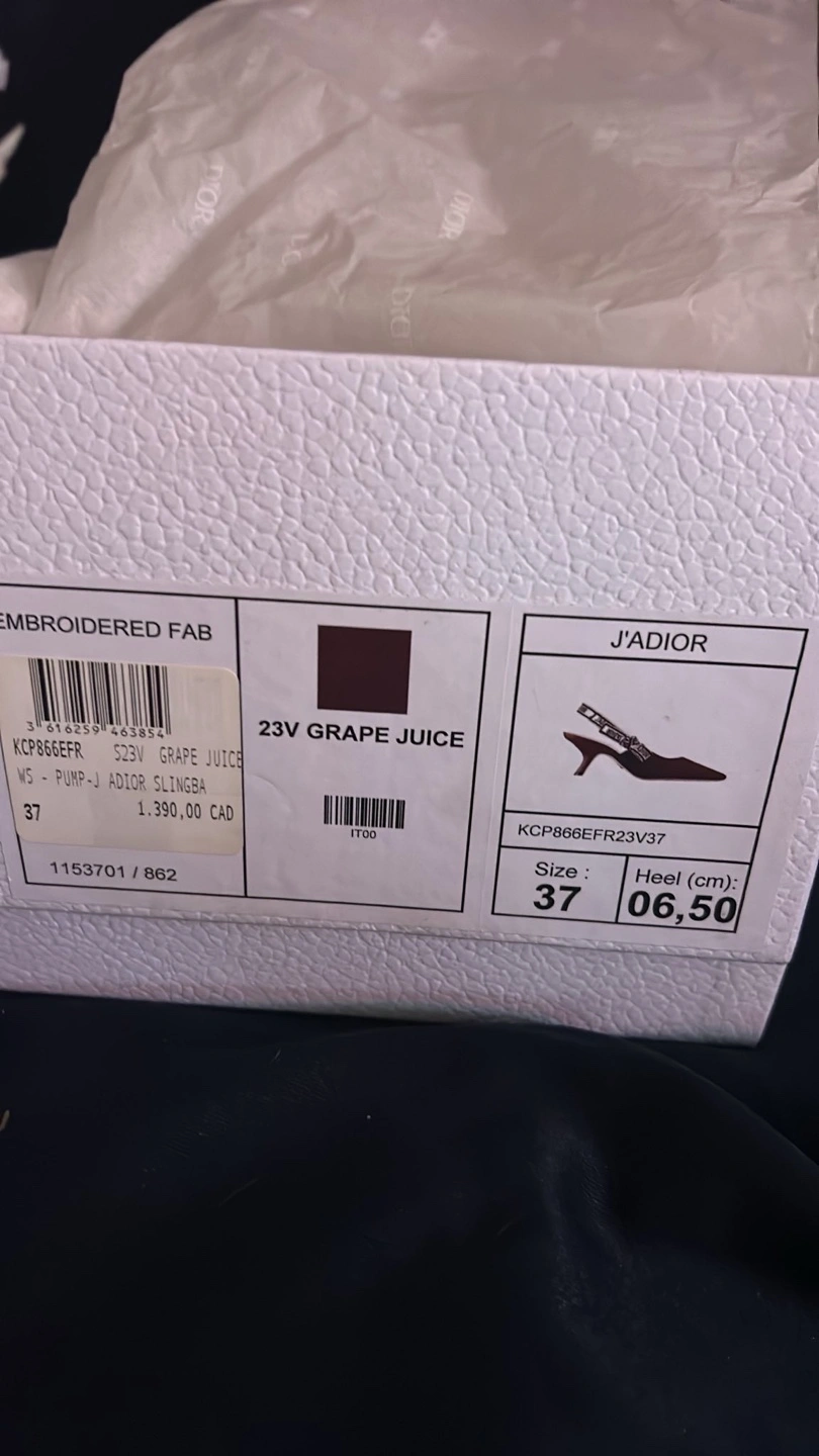 Selling a pair of Dior J'Adior slingback pumps in size 37. The colour is a beautiful Grape Juice (23V). They come with the box and dust bag. The heel height is 6.5 cm. Originally bought for $1390 CAD
