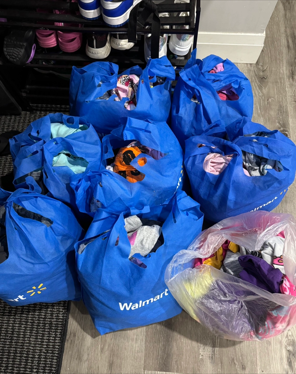 I have several bags of used clothing for sale. They are in blue Walmart bags are sizes 5/6 and 7/8 and some 10. And clear back is size 6. There is roughly 150 pieces. Some under armour, bench, Nike, carters Oshkosh, lol dolls, Nike and more. all great cheat shape some never worn.
