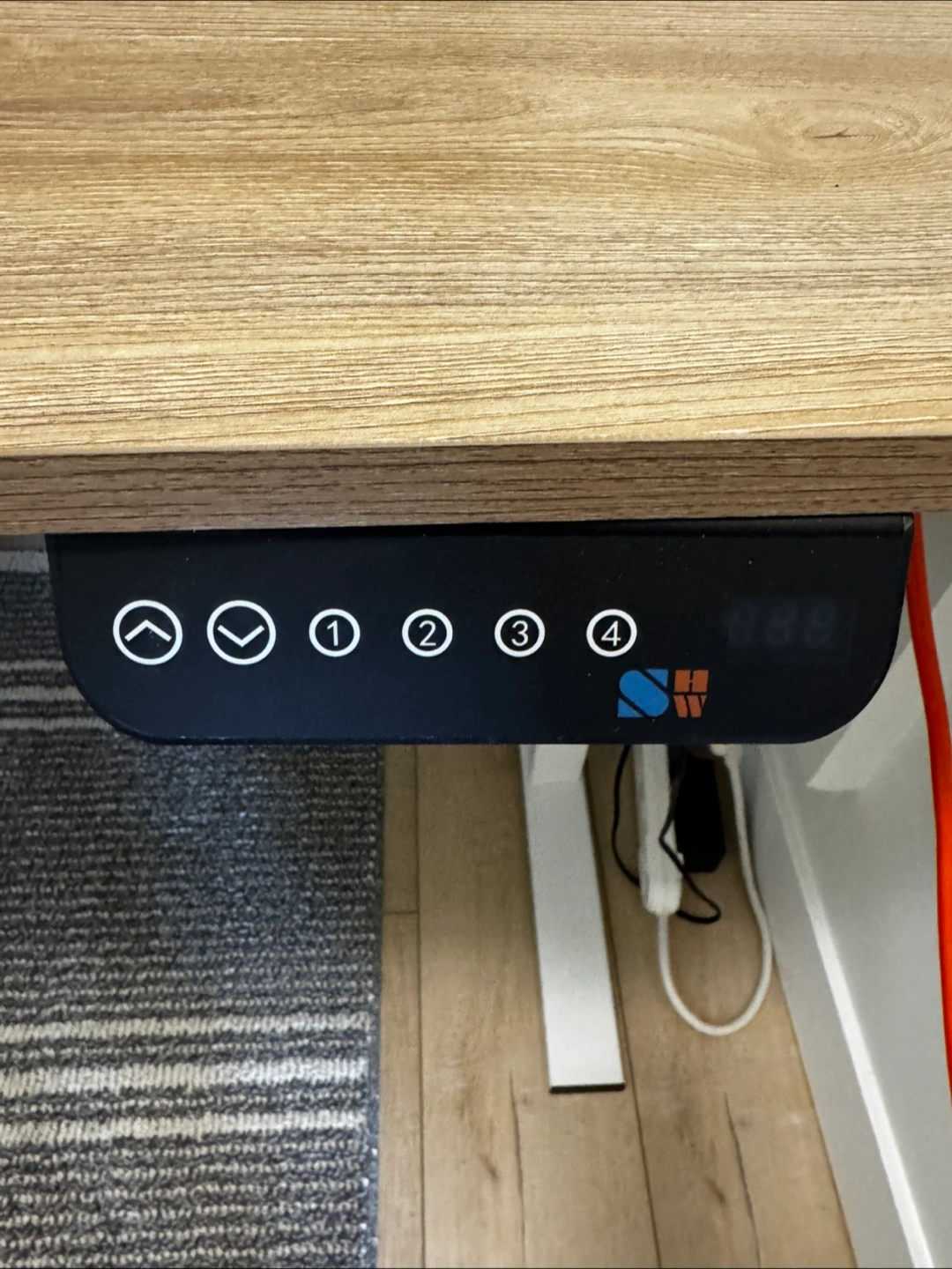 Selling a standing desk with an adjustable height feature! It's in great condition and ready for a new home office setup. The brand appears to be SHW. Barely used - almost new condition Amazon link for specifications https://a.co/d/eGj6ZEj Pickup preferred. Delivery available with extra charge.