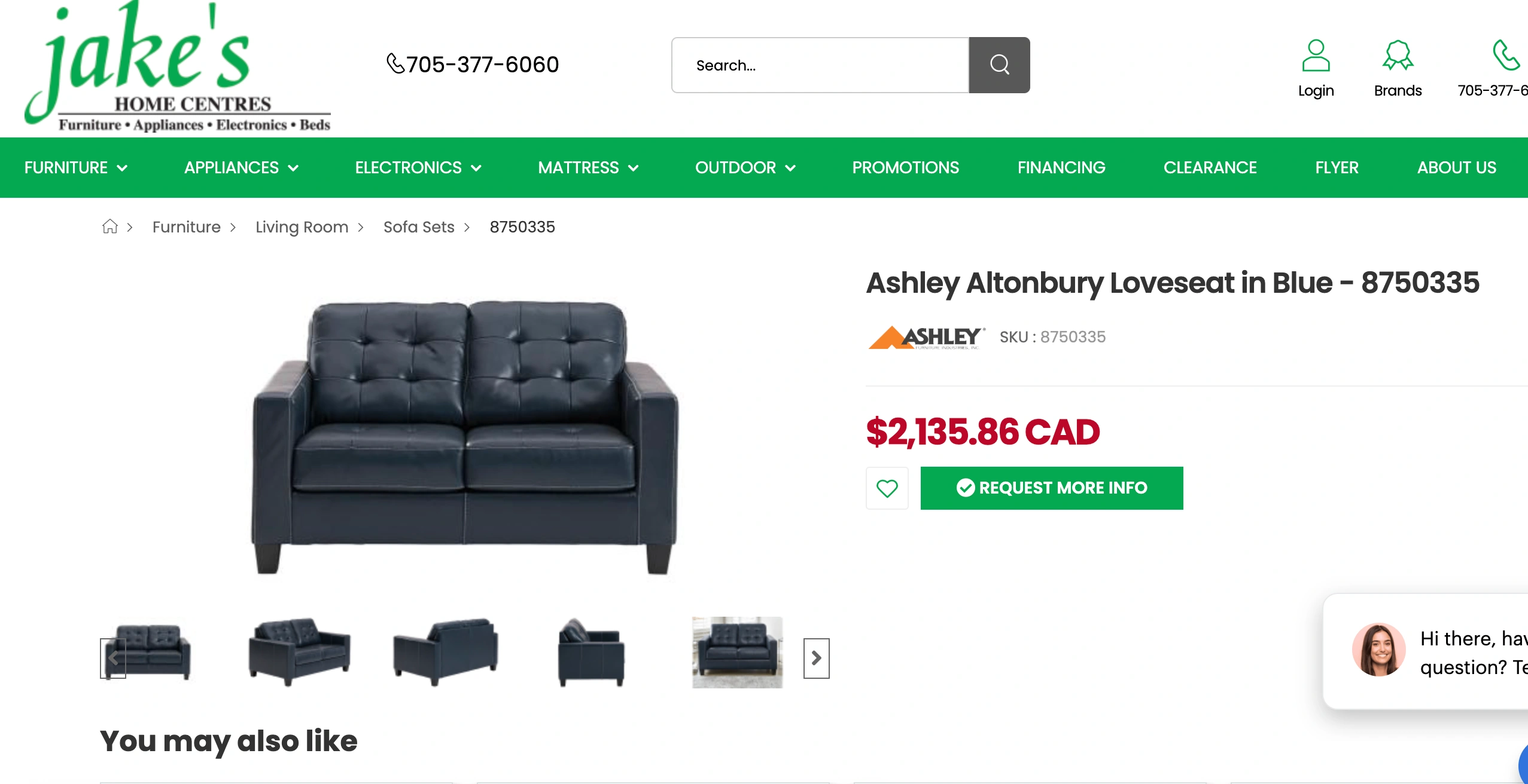 Ashley Dark Blue Leather Loveseat โ Genuine Leather sofa