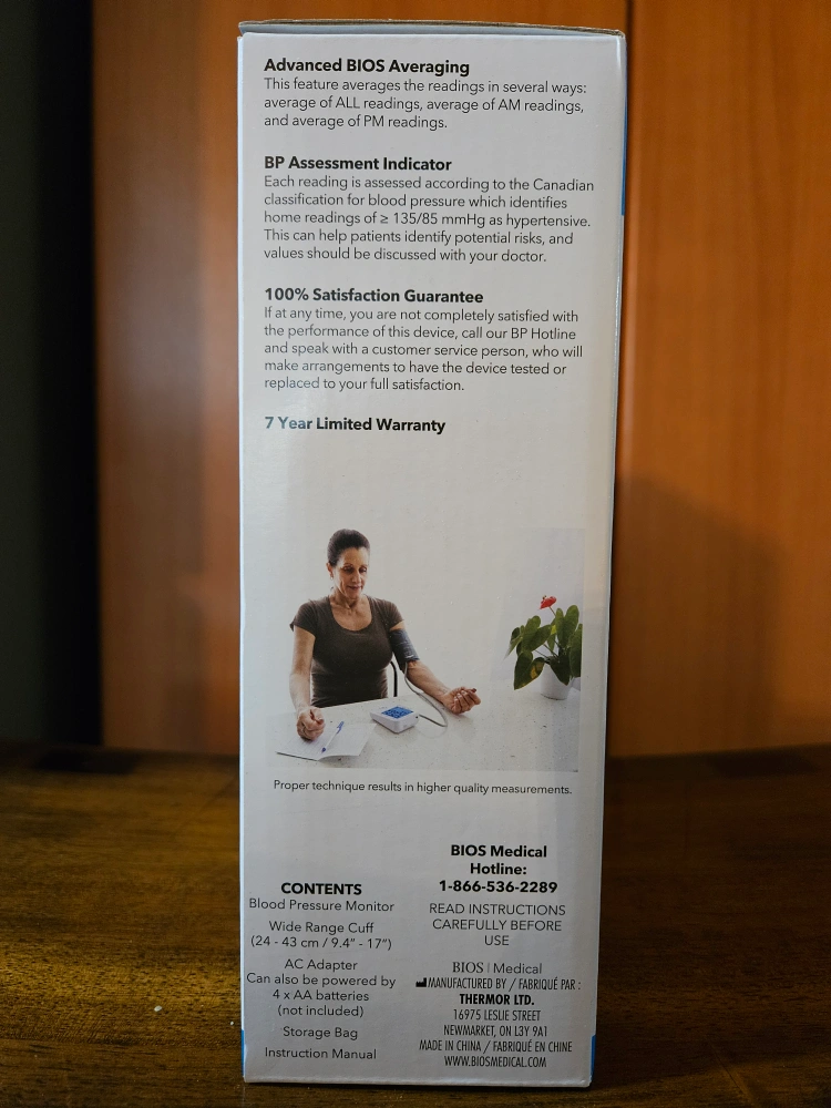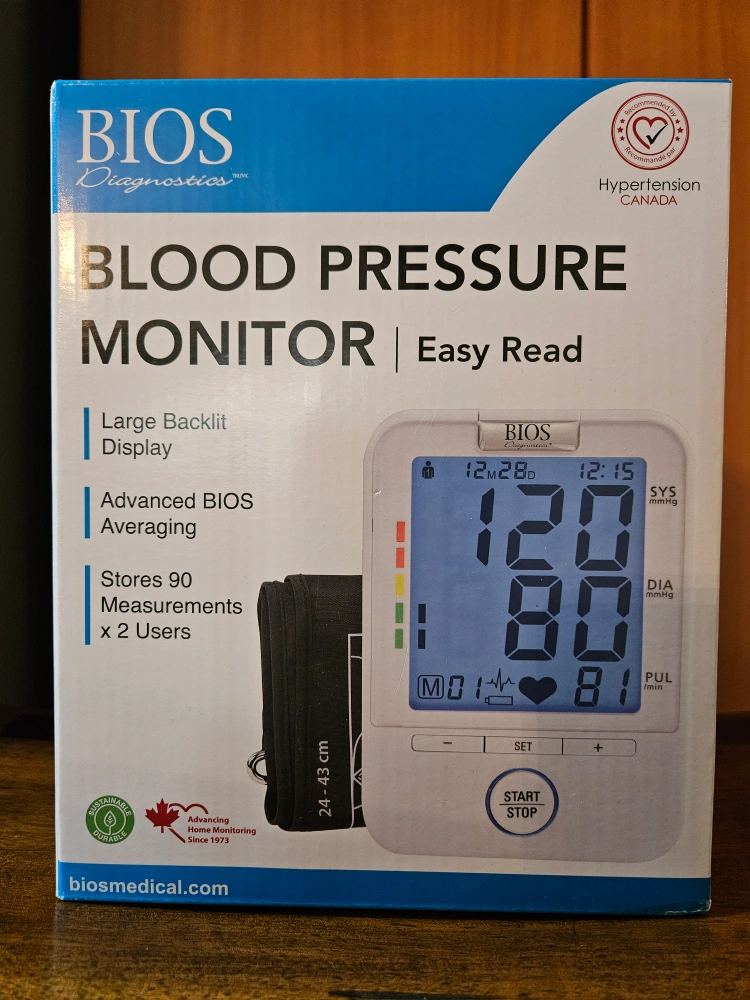 Selling a BIOS Diagnostics Blood Pressure Monitor with an easy-to-read display. It's brand new, never opened the box and comes with the box and included accessories.