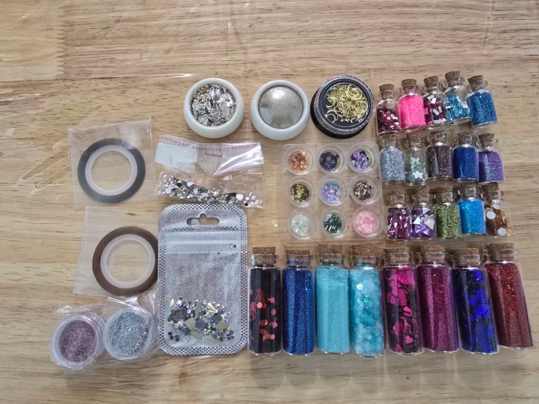 • Comprehensive nail decoration set with over 60 items • Includes: 22 mini glass bottles with glitters, sequins, and confetti (various shapes & colors) 12 glitter gels and decorative powders in jars 2 foil jars (gold & silver) Nail striping tapes (3 rolls) Flatback rhinestones and crystals Assorted 3D nail art decorations (stars, butterflies, hearts, etc.) 1 jar of gold decorative metal accents • Used only once, most items untouched • All in excellent condition – stored in clean packaging • Perfect for nail techs, DIY nail lovers, or resin artists Price: $30 CAD 👀 Please check out my other posts for more beauty and nail art tools! Please note the item is sold as-is. All sales are final. Pick-up only. Cash only. First come, first ser