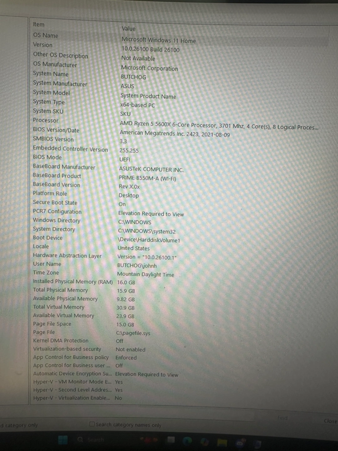 - Motherboard: ASUSTeK COMPUTER INC. PRIME B550M-A (Wi-Fi)