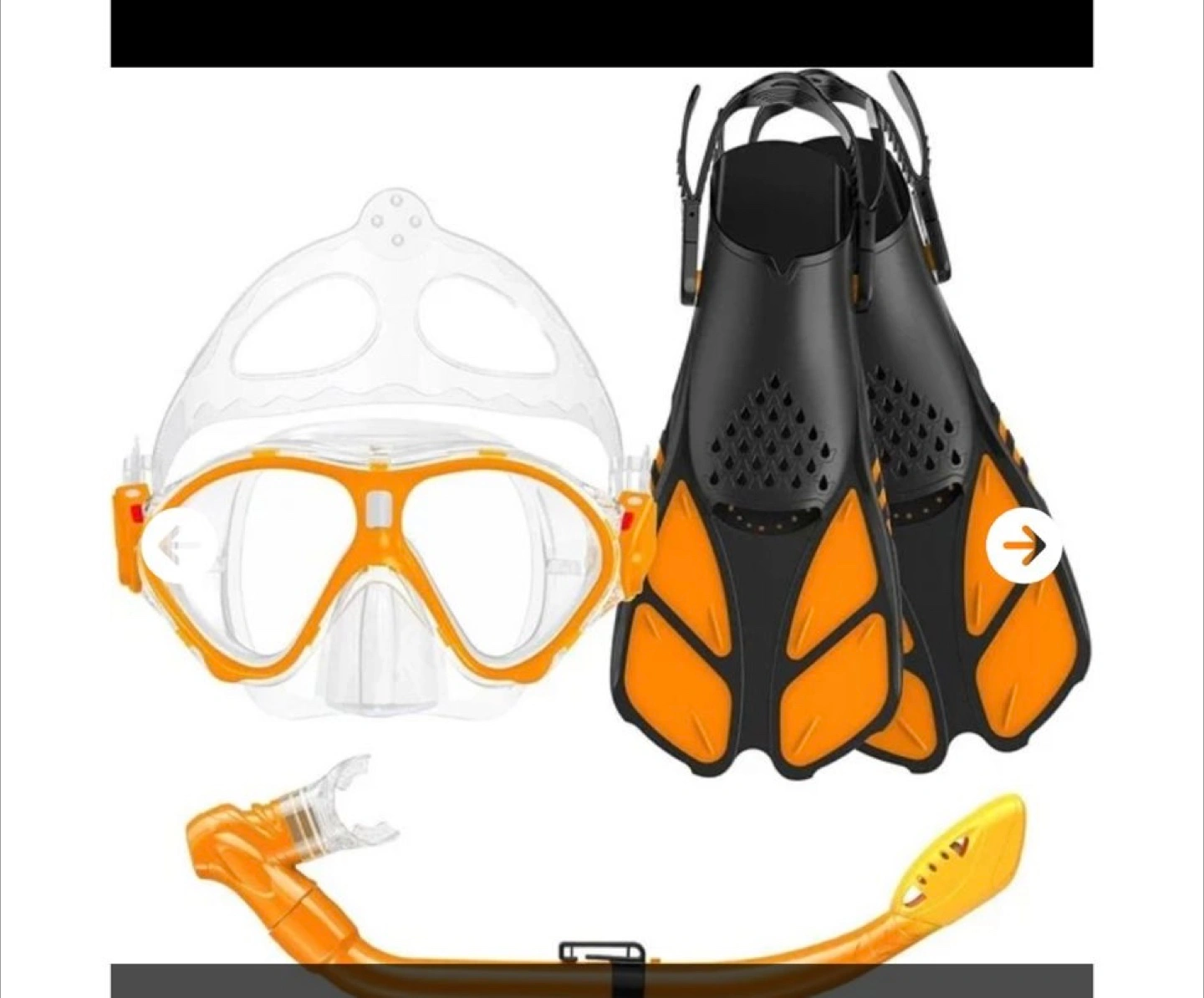16Looking to sell this snorkel set, perfect for your next underwater adventure! The set includes a mask, fins, and a snorkel. The fins are black with orange accents, and the mask has a clear lens with an orange frame. Get ready to explore the underwater world!