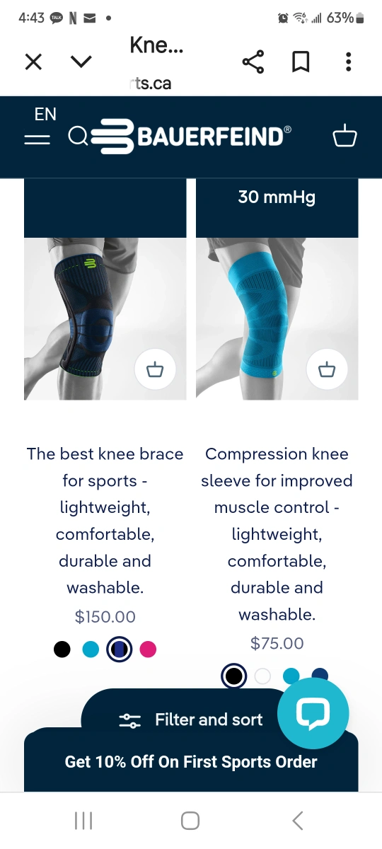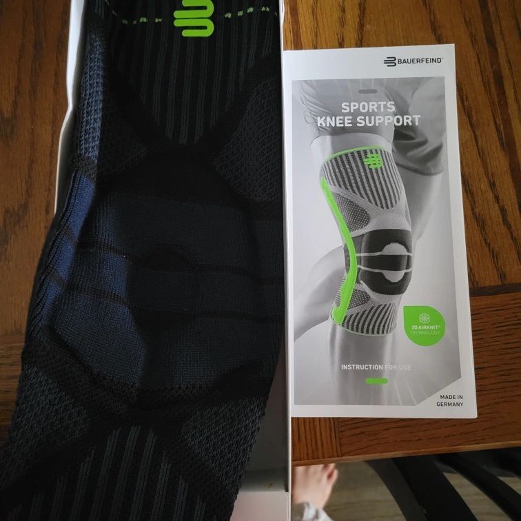 Selling a Bauerfeind Sports Knee Support. It provides compression and is lightweight, comfortable, durable, and washable. The box is included! It also features 3D Airknit technology.