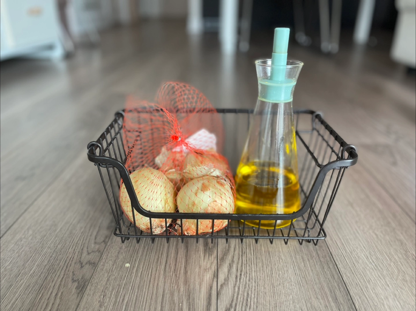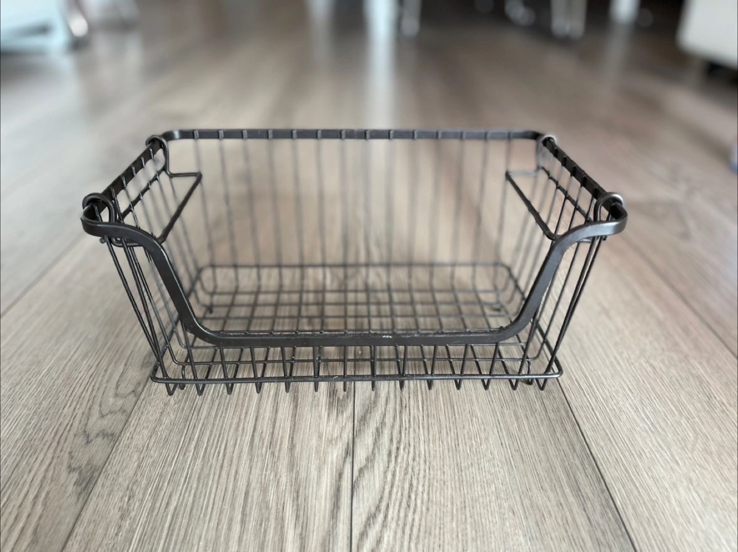 Selling a handy black wire storage basket. It's in great shape and ready to help you organize your space. Perfect for the pantry, bathroom, or anywhere you need a little extra storage