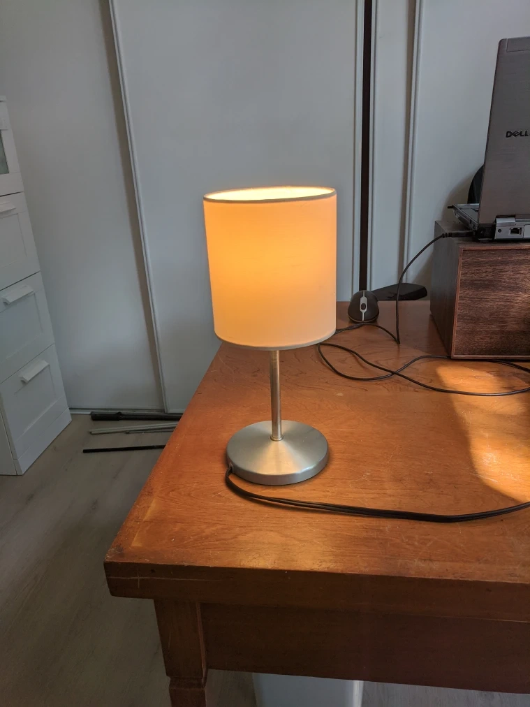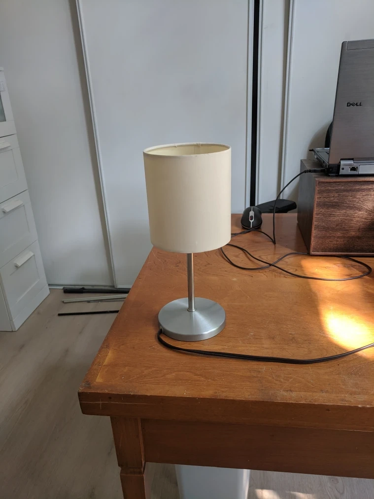 1000+Selling a small simple table lamp! It has a beige shade and a silver-tone base. Perfect for a desk or bedside table! Used but okay. Pick up at 195 Merton Street Toronto Or pick up at Subway station Davisville. And if you buy some more items in my listing I'll deliver it to your house.