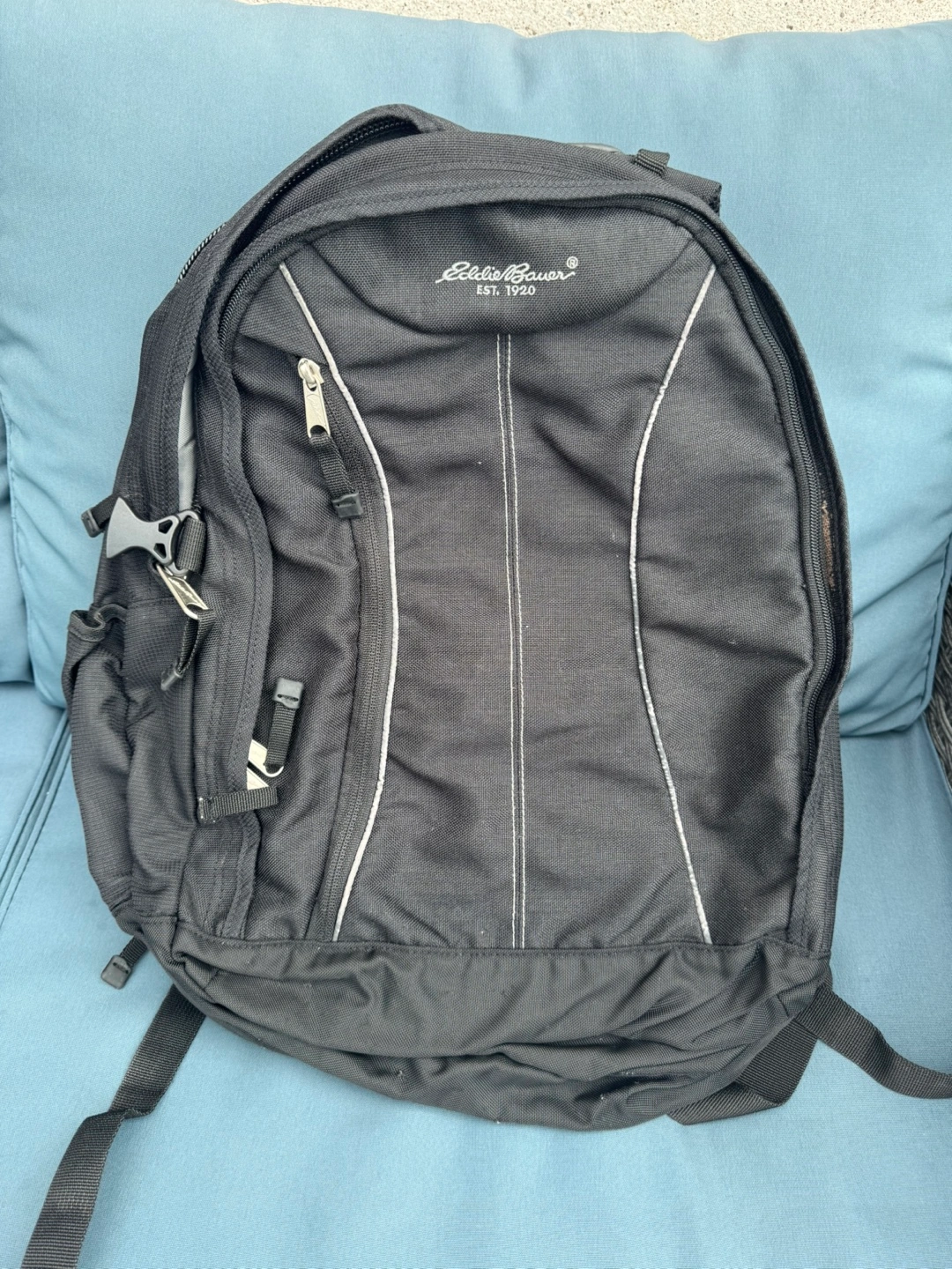Eddie Bauer black backpack in great condition! Perfect for school, work, or travel. It's lightweight and has lots of compartments to keep your belongings organized