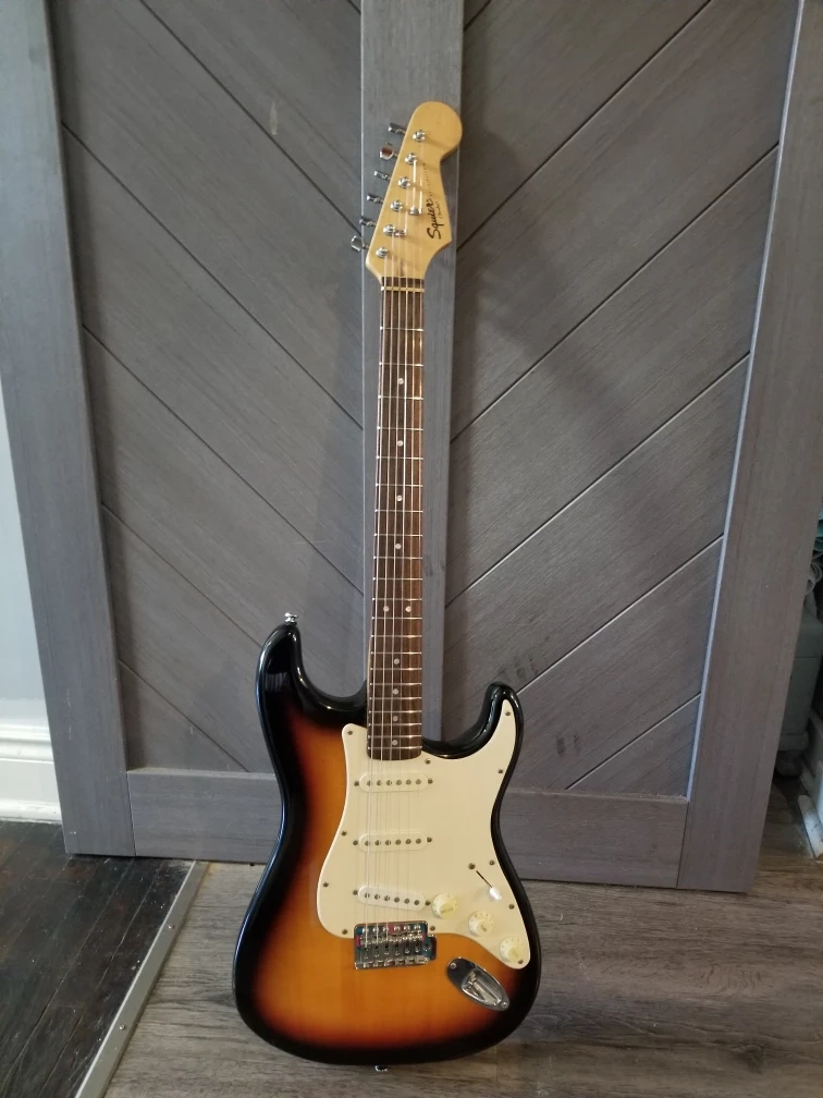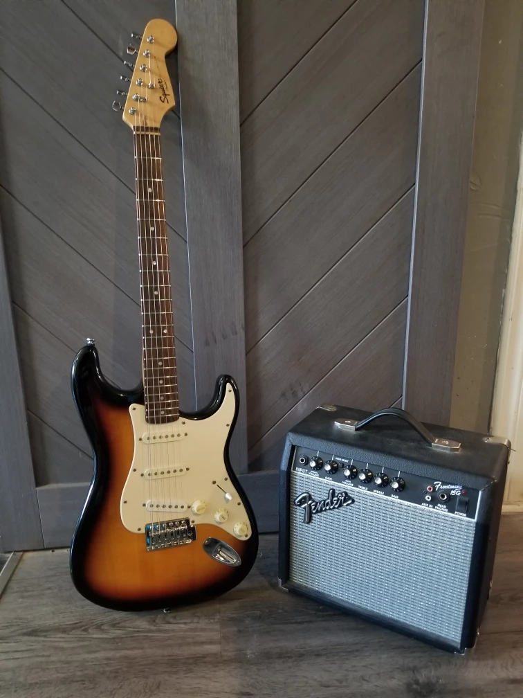 Selling a Fender Frontman 15G guitar amplifier. It's in good condition and ready to rock! This amp is perfect for practice or small gigs. Also included is a Squier guitar.