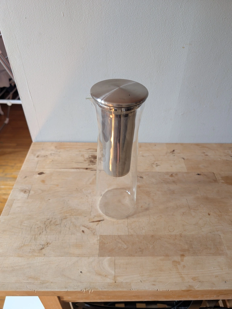Selling a cold brew coffee maker. It includes the glass pitcher, stainless steel filter, and lid. Perfect for making delicious cold brew at home!