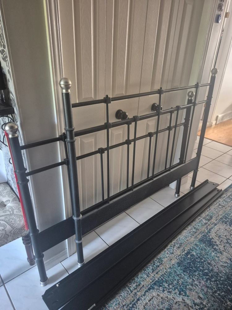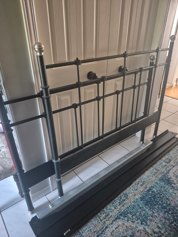 Selling a sturdy double size metal bed frame in black. It's in great shape and ready for a new home. Perfect for adding a touch of classic style to your bedroom. No slats available.
