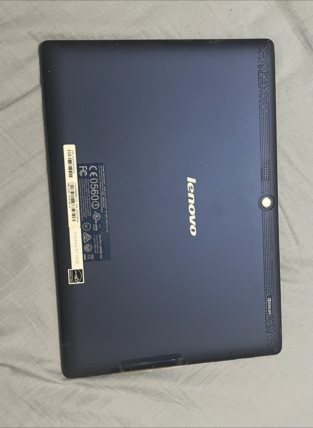 Selling a Lenovo tablet. It has a black case surrounding the screen and a dark grey back. Feel free to ask any questions!