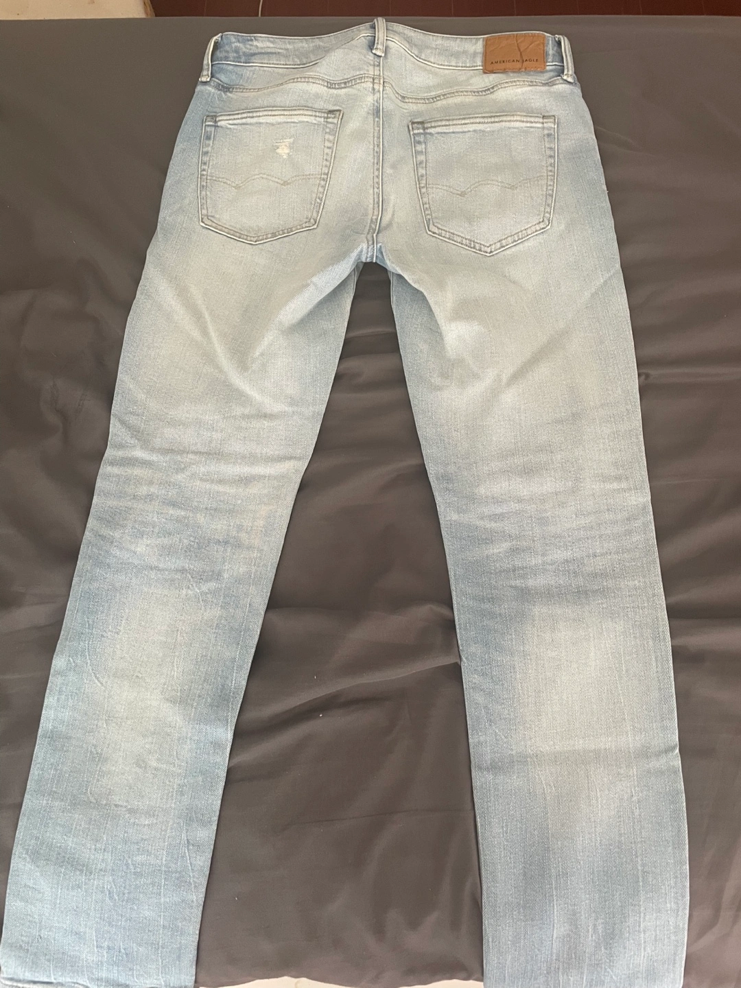 Selling a pair of American Eagle AIRFLEX+ jeans. They are a light wash denim with distressed detailing. Great for a casual look! Work once