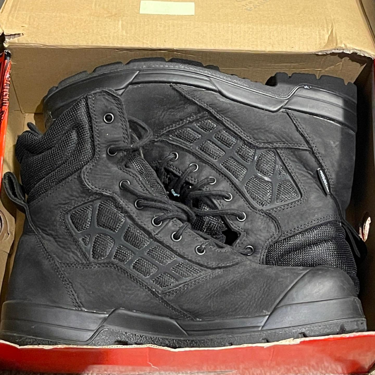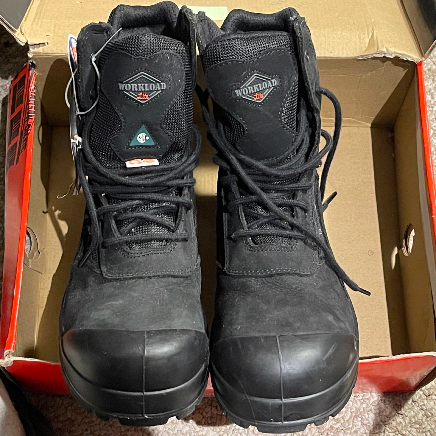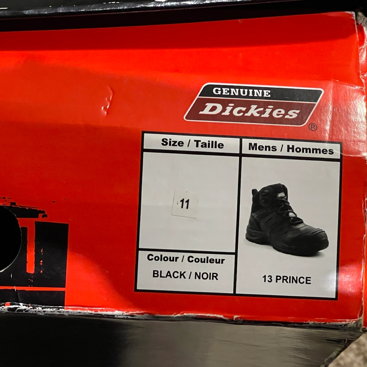 35Dickies Workload steel toe work boots, size 11. These boots are CSA certified for your safety, built to meet Canadian standards. They feature a leather upper and synthetic balance. Comes in the original box! (Damaged box)