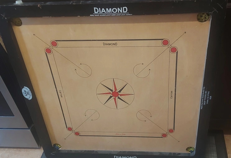 Selling a Diamond carrom board! It's in good shape and ready for some fun games. The board measures 76cm x 76cm. It's made in India and has a silky smooth, scratch-proof, water-resistant surface