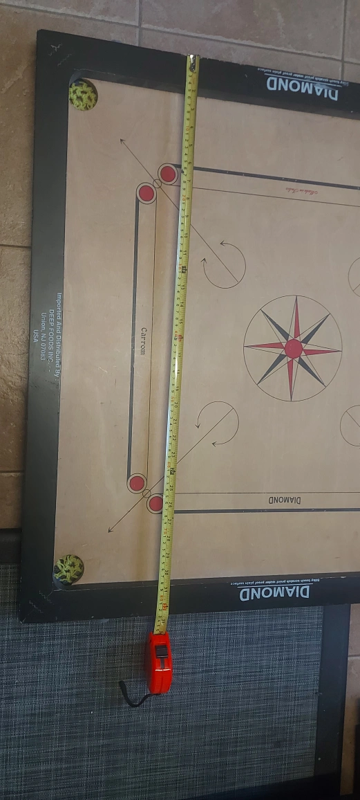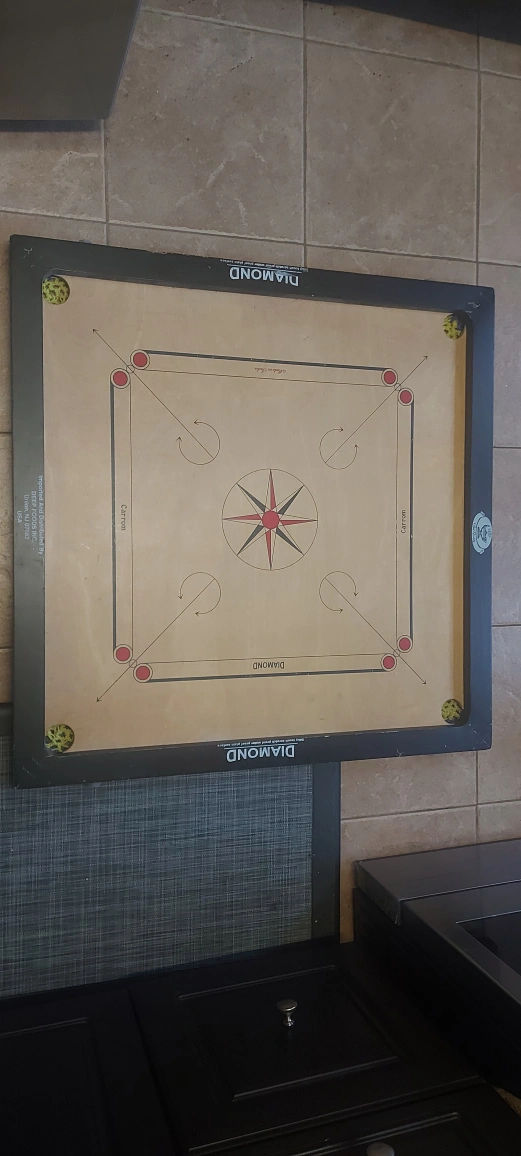 Selling a Diamond carrom board! It's in good shape and ready for some fun games. The board measures 76cm x 76cm. It's made in India and has a silky smooth, scratch-proof, water-resistant surface