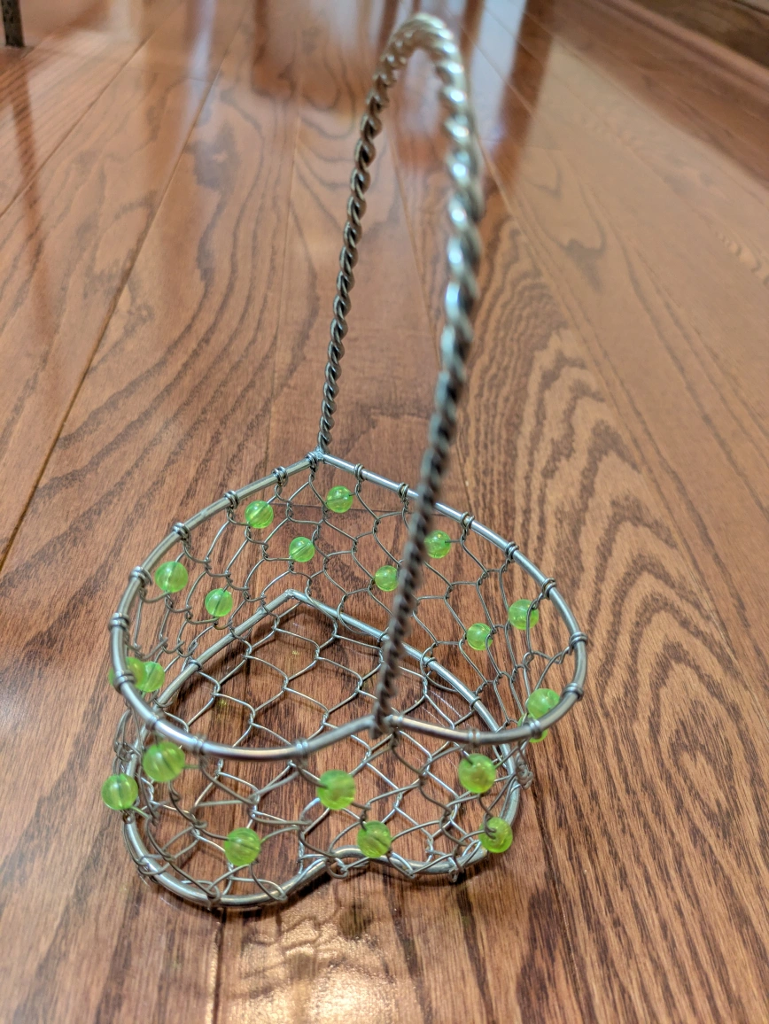 Heart-Shaped Wire Basket with Green Beads