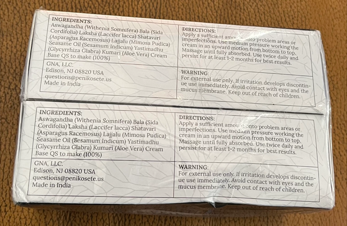 I'm selling a brand new pack of Penikosete Varicose Vein Cream. This pack contains two 50 ml (1.7 fl.oz) creams. Best Before June/2026. Ingredients include: - Aswagandha (Withania Somnifera) - Bala (Sida Cordifolia) - Laksha (Laccifer lacca) - Shatavari (Asparagus Racemosus) - Lajajlu (Mimosa Pudica) - Seasam Oil (Sesamum Indicum) - Yastimadhu (Glycyrrhiza Glabra) - Kumari (Aloe Vera) - Cream Base QS to make (100%)