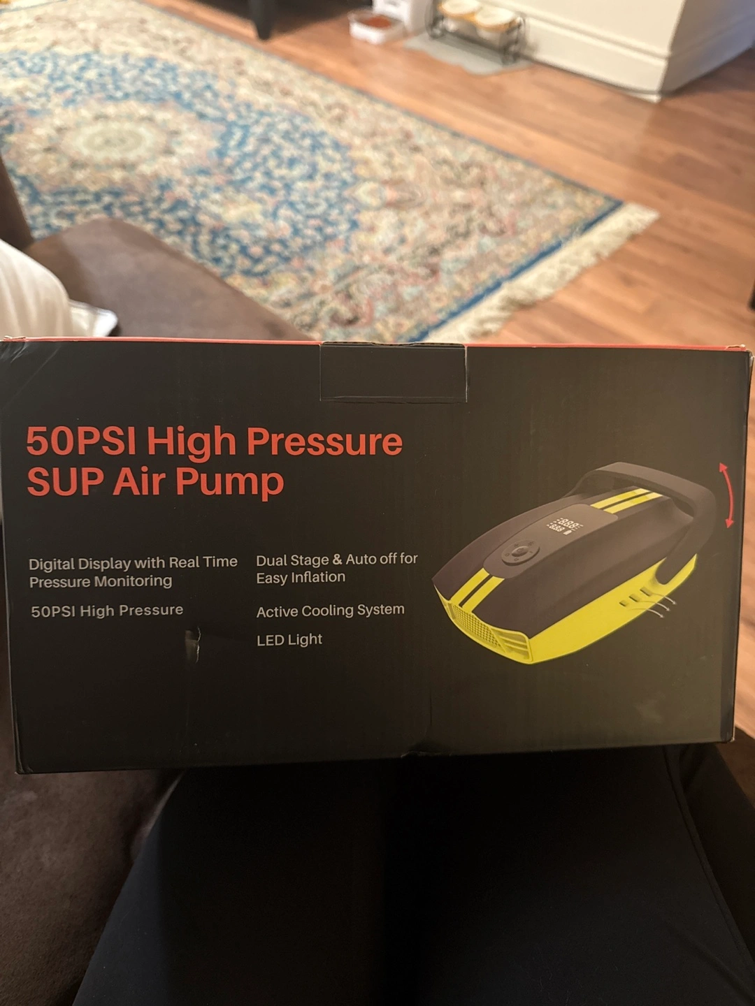 28Selling a 50PSI High Pressure SUP Air Pump. It features a digital display with real-time pressure monitoring, dual-stage and auto-off for easy inflation, an active cooling system, and an LED light