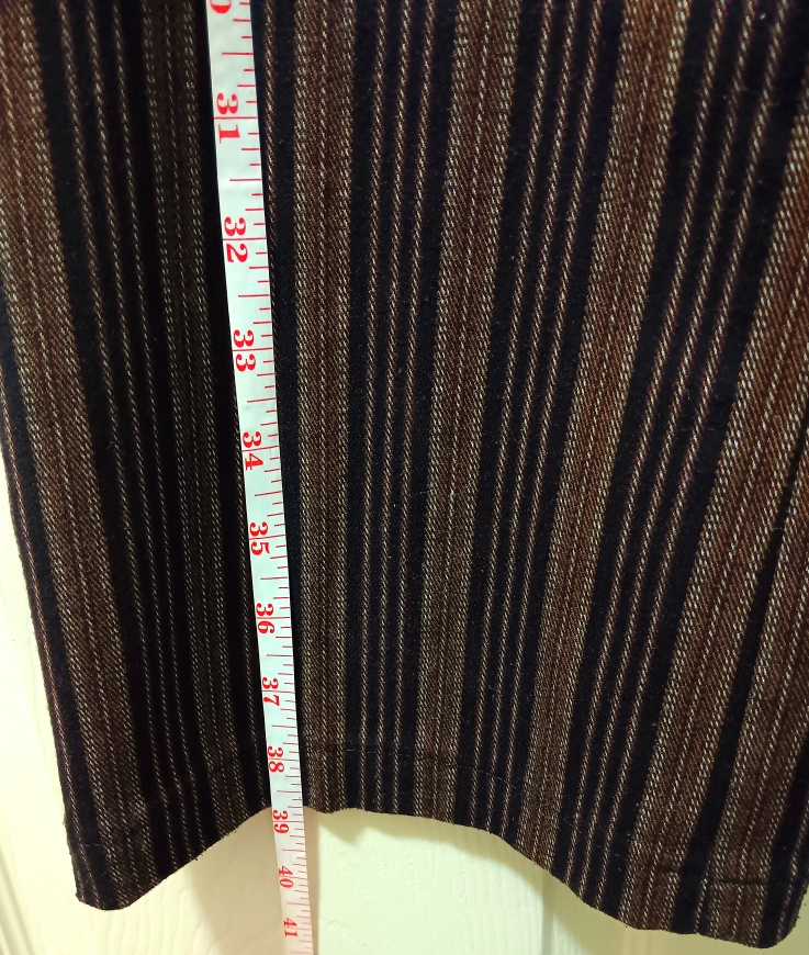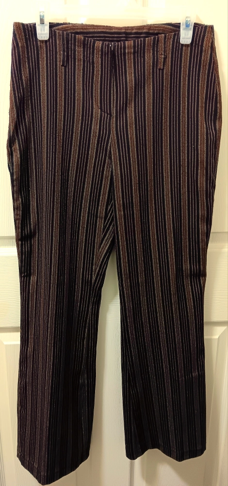 These Suzy Shier pants are a stylish addition to any wardrobe! They feature a unique striped pattern in brown and black.