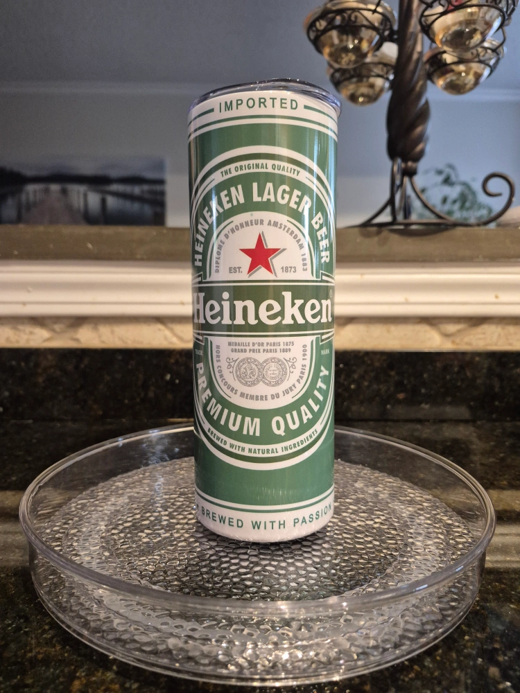 Keep your drinks cold with this Heineken Lager Beer tumbler! It's got the classic Heineken design and is perfect for keeping your beverage of choice nice and chilled