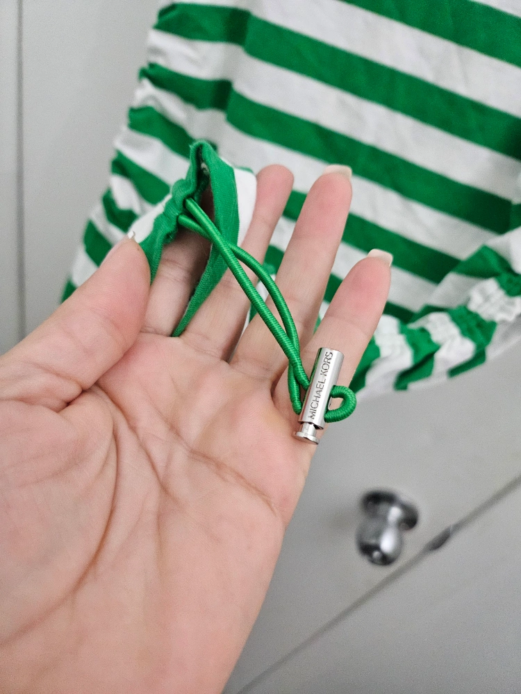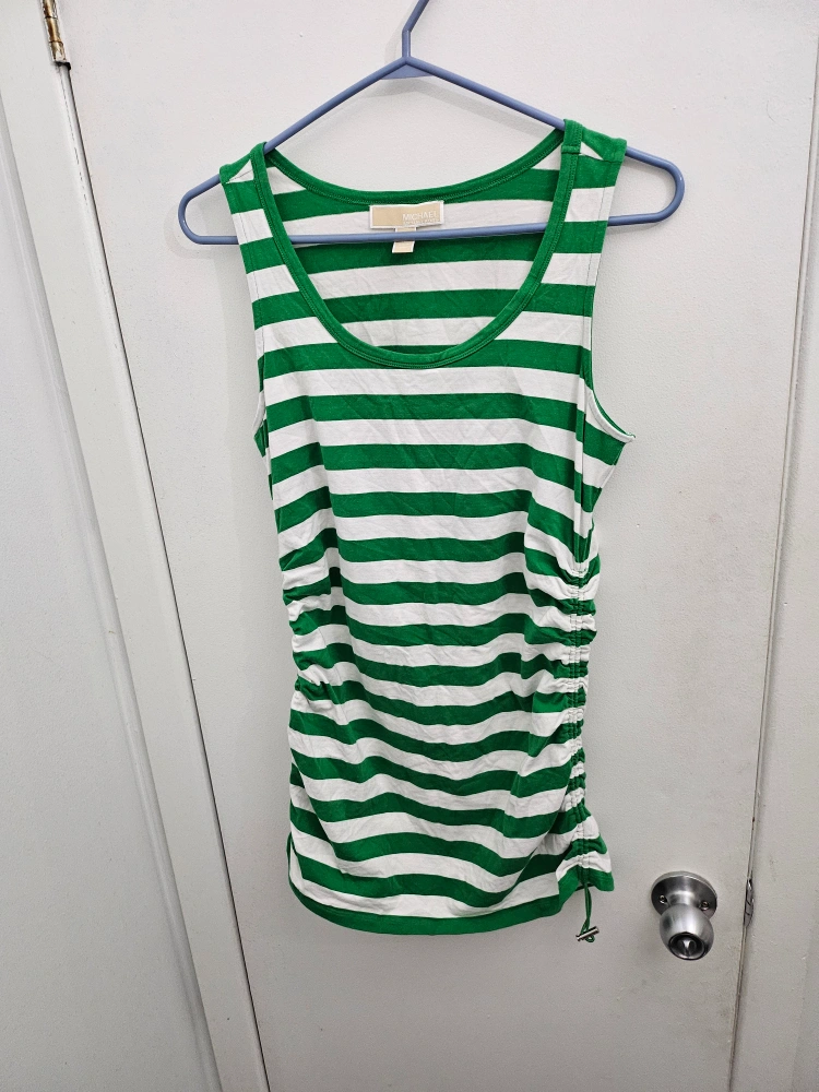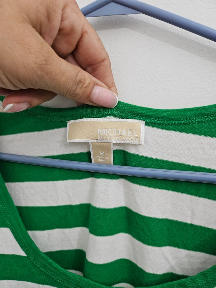 38Joli chandail Michael Kors à rayures vertes et blanches, parfait pour l'été! Il est de taille M .